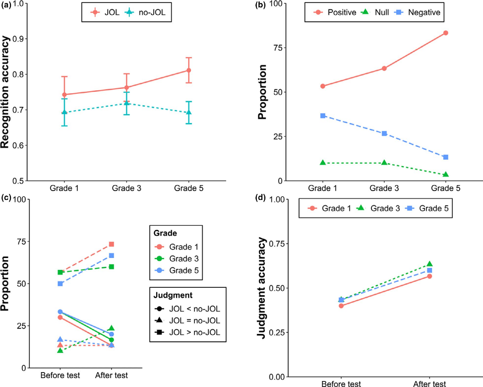 2021年9月17日,欧洲杯 -教育部人文社科重点研究基地、发展心理研究院杨春亮副教授和罗良教授在知名心理学期刊Child Development发表了题为When judging what you know changes what you really know: Soliciting metamemory judgments reactively enhances children’s learning的研究论文。该研究首次揭示了学习判断(judgments of learning;JOLs)对儿童学习的反向效应(the reactivity effect),并探讨了反向效应的发展轨迹及其元意识(meta-awareness)。 人们在学习过程中经常会监测自己当下的学习状态,如自我评估“我学会了吗?”,“这门课程期末考试我能考多少分?”,“一周后,我能成功回忆起某个单词的可能性有多大?”。这些自我评估均涉及到对自己所学内容的元认知监测与判断。 在实验室研究中,学习判断是考察元认知监测准确性的一种重要研究方式。学习判断是指在学完一些材料之后,学习者主观预测自己在未来测试中能够记住或成功回忆起这些材料的可能性的一种前瞻性判断。近些年来,一些研究发现,相比于单纯的学习条件(即,相比较于不做学习判断),学完每一个项目之后做一个学习判断能够显著提高人们对所学项目的记忆成绩,该现象被称之为反向效应(即,学习判断反向改变了其判断的对象本身 —— 记忆)。 反向效应表明学习判断可以作为一种学习策略来提高学习成绩。然而,以往研究均以成年人作为研究被试,该效应是否也存在于儿童群体?该效应的发展轨迹如何?儿童是否能够意识到学习判断对记忆成绩的提高作用?如果意识不到,有什么方法可以提高儿童对于这种促进作用的元意识? 为了回答以上关键问题,北京师范大学学习与元认知课题组(课题组网站://metacog.ouzhoubeitop.com/)共招募了190名一年级、三年级及五年级儿童。从小学一年级课本中选取100个汉语双字词作为实验材料。正式实验中,对于一半的词语(即,JOL项目),儿童被试在学习每个词语的同时预测自己在接下来的测试中能够记住该词的可能性,然而对于另一半的词语(即,no-JOL项目),儿童只需要去识记它们,不需要在学习的同时做记忆预测(实验程序见下图)。学习结束之后,要求儿童参加10分钟的拼图游戏。之后,所有儿童被试参加记忆测试。 记忆测试的结果表明,三个年级的儿童被试均表现出对于做学习判断的词汇比不做学习判断的词汇记得更好的现象,即表现出反向效应(见下图a)。更为重要的是,相比较于一年级和三年级儿童,五年级儿童表现出了更大的反向效应,表明反向效应随着年龄而逐渐增加。 此外,该研究还考察了儿童是否认能够意识到学习判断对学习成绩的促进作用。结果发现,在记忆测试前,仅部分学生(约50%)认为学习判断能够提高记忆成绩(见下图c)。然而,在完成记忆测试后,约65%学生能够成功意识到学习判断的促进作用(见下图c)。该结果表明,测试体验能够作为一种有效的干预手段,提高儿童对于反向效应的元意识。 综上,元认知判断作为一种学习策略可以提高儿童的学习成绩和记忆保持。以上结果对揭示学习判断作为一种学习策略能够有效提高儿童的学习成绩以及揭示了儿童反向效应及其元意识的发展模式做出了贡献。同时,该研究也揭示了测试体验对于儿童元意识的矫正作用。 以上研究成果于近期发表于心理学知名期刊Child Development (IF = 5.90)。课题组研究助理赵婉琳和博士生李佰科为本文共同第一作者,通讯作者为杨春亮副教授,其他作者包括北师大发展心理研究院、中国基础教育质量监测协同创新中心罗良教授、伦敦大学学院David R. Shanks教授及课题组其他硕博生。 本研究得到国家自然科学基金(32000742; 32171045)、中央高校基本科研业务费专项资金(2019NTSS28)以及英国ESRC基金(ES/S014616/1)资助,特此表示感谢。 文章链接://srcd.onlinelibrary.wiley.com/doi/abs/10.1111/cdev.13689 课题组网站://metacog.ouzhoubeitop.com/ 参考文献: Yang, C., Yu, R., Hu, X., Luo, L., Huang, T. S. T., & Shanks, D. R. (2021). How to assess the contributions of processing fluency and beliefs to the formation of judgments of learning: Methods and pitfalls. Metacognition and Learning, 16, 319–343. //doi.org/10.1007/s11409-020-09254-4 |