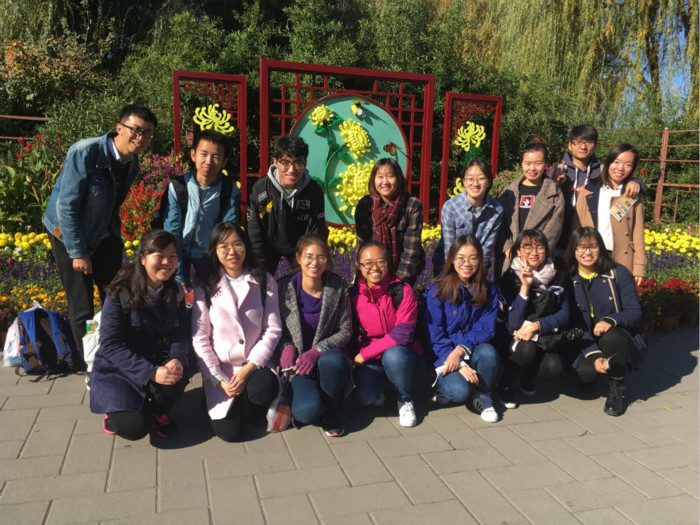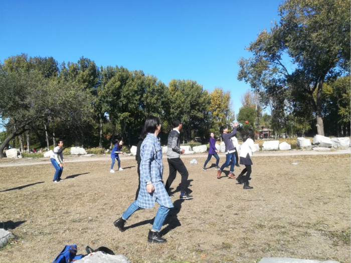 北风如约而至,一夜之间,雾霾尽散,蓝天重现。正如老舍所言,北平的秋天便是天堂。 为了促进同学间的交流,营造和谐的班级氛围,2016级学硕班委征得同学们的意见,决定于2017年10月29日组织全班开展集体性秋游活动,与大自然来一次亲密的接触。 班委们提前准备,统筹安排。上午九点于北师大东门集合,所有人一同乘车前往绮春园。达到目的地之后,我们都沉浸在如画卷般的美景之中。秋高气爽,天空清澈,湛蓝透亮的程度直逼西藏拉萨。银杏叶子黄了,周围被装饰得一片金黄,格外漂亮。 首先,班委们组织大家参观了菊花展,站着观其型,俯身闻其香。看一看花瓣的层层堆砌、团团相拥,闻一闻菊花的馥郁芬芳、沁人心脾。同学们驻足于花展之间,凝神于花香之中,情不自禁放飞自我,思绪万千。 之后,班委们将全体同学分成两组,开展“扔沙包”活动。安静的小广场突然变得热闹非凡,沙包在我们之中来回穿梭。小小的活动不仅促进了同学之间的互动交流,更是把我们带进令人神往的童年时光。 最后,班委们组织同学们去“海底捞”聚餐,期间还穿插一些小游戏,整个过程中其乐无穷,笑声不断。 总之,虽然这次活动短暂,但是对大家来说却意义非凡。不仅缓解了同学们在开题之前的压力,而且增进了同学们的联系,更加强了班级的凝聚力。