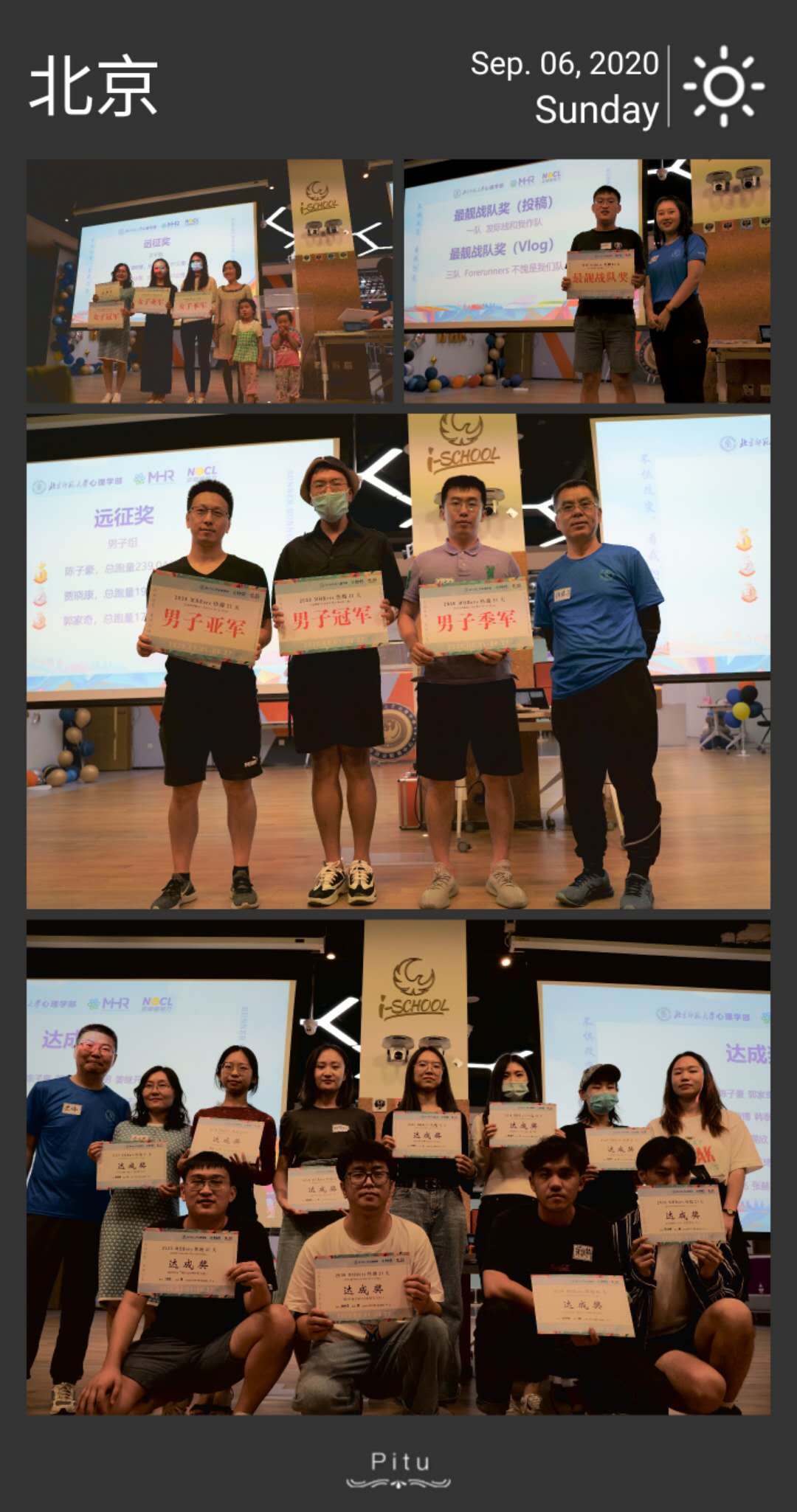 9月5号晚,北京师范大学应用心理测量与人力资源管理方向(MHR)的“2020MHRers热跑21天”活动颁奖仪式圆满举办。本次颁奖仪式是为了带领大家共同回顾跑步历程以及对活动中表现突出的个人及团队颁奖,同时也是2020级新生第一次与MHR培养与教育管理联合协作组及MAP老师们的线下见面。本次仪式出席嘉宾有MHR方向负责人徐建平老师、MAP中心主任孙舒平老师、MAP招生教学主管王娟老师、MAP宣传主管任若楠老师、领导力研究中心主任史伟老师、领导力研究中心雷桂林老师、孟康蕾老师、19级班主任张苑媛老师、20级班主任陶文洁老师,以及19级学生代表周娣、董治良、赵凯、张家语和张南西。本次动员大会的主持人为领导力研究中心的成诺老师。