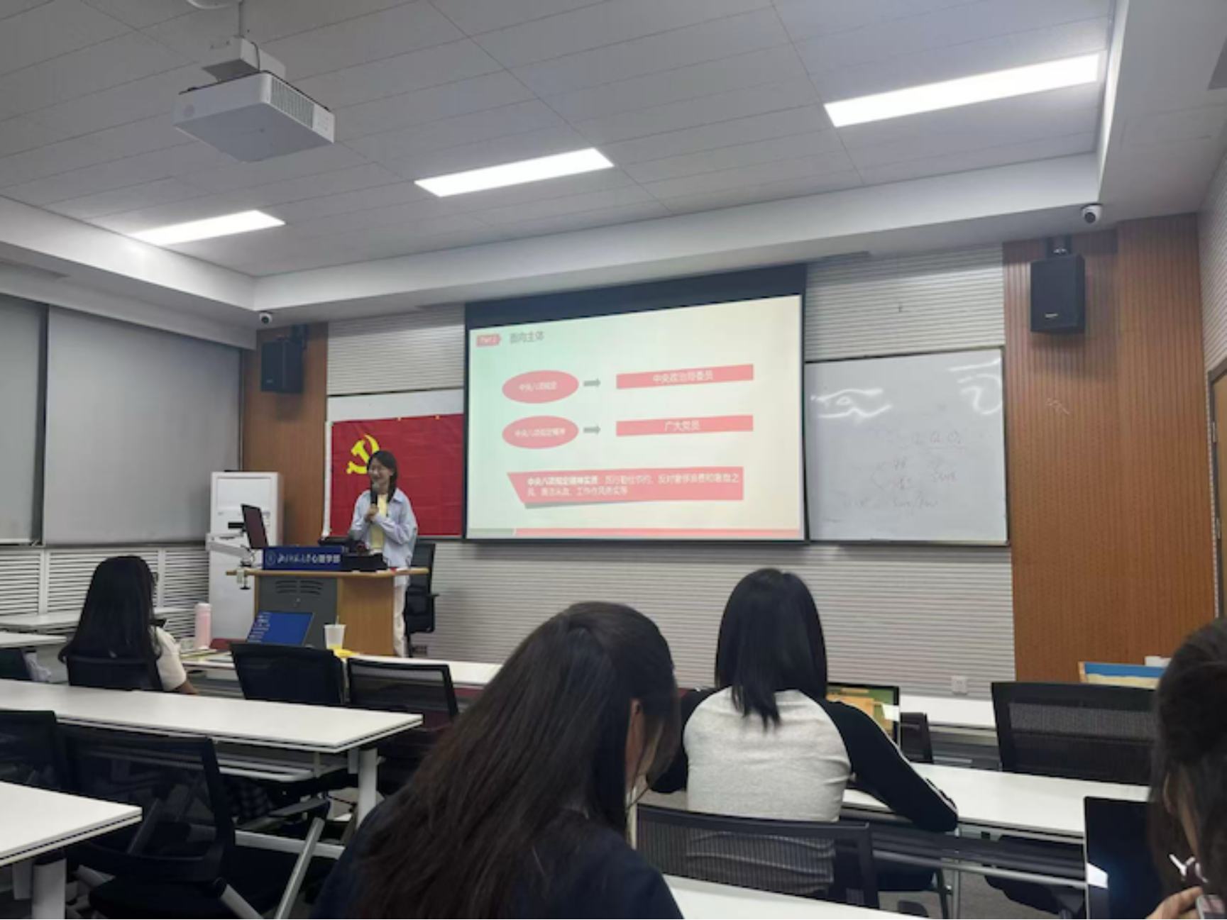 为深入贯彻习近平总书记关于全面从严治党的重要论述,落实中央八项规定精神,进一步强化党员干部的纪律意识与作风意识,2025年5月26日晚8点,欧洲杯 本科生第一党支部“支书讲党课”在金丰和609教室顺利开展,会议由党支书杨媛同志主持,共40名成员参与。本次会议的主要内容分为党课教育和专题研讨两个部分。 会议一开始,杨媛同志首先带领所有人一起奏唱了国际歌。