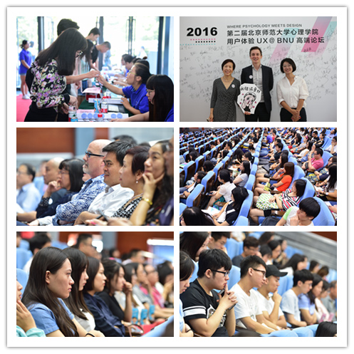 2016年8月28日,北京师范大学心理学院举办第二届北京师范大学心理学院用户体验UX@BNU高端论坛”, 本次论坛以“Where Psychology Meets Design”为主题,汇集了UX领域从学术到企业等各界的知名人士,提供UX产研融合和思想分享的平台,探索UX在未来教学、科研和实践中的应用,从而推动UX在教学培养和应用方面的进一步发展。 本次论坛邀请到来自美国普渡大学人机交互中心、北京科技大学机械工程学院、清华大学美术学院信息艺术设计系和北京师范大学心理学院的专家教授莅临演讲,此外还有来自微软、华为、英特尔等公司的从事UX的高级研究员等资深专家与会发言,嘉宾在论坛上就自己所精通的领域进行了精彩的主题演讲,现场参会人员积极发问、主动交流,将论坛气氛推向高潮。在论坛的茶歇环节,部分与会企业做了新产品用户体验。最后进行的圆桌讨论环节,更是一场用户体验(UX)领域前沿思想与实践交融的盛宴。 为了传达论坛的理念,深化论坛上所学的知识,8月29日-30日这两天心理学院将面向各界学生、青年教师、初级设计师等人士举办2天4场的UX实战系列工作坊。当设计遇上心理,会发生怎样的奇妙体验?跨界与融合,无限欣喜,无限可能,无限期待。 北师大心理学院是我国首个心理学院,在全国高校心理学科排名第一。2011年,学院在招收传统的学术硕士和博士的基础上开始招收应用心理专业硕士(MAP,Master of Applied Psychology)。经过几年的建设,北师大MAP已经成为中国MAP的引领者。2015年7月,北京师范大学心理学院成功举办了“第一届北京师范大学心理学院用户体验和人机交互实验室成立暨UX专硕招生发布会”,成立了国内第一个“用户体验(UX)方向”应用心理专业硕士方向(MAP,Master of Applied Psychology),第一批学生将于2016年9月入学,旨在培养国内掌握应用认知心理基本理论,能熟练运用心理学实验与分析方法解决HCI/UI/UX领域实际问题的应用型、实践型、复合型专门人才。