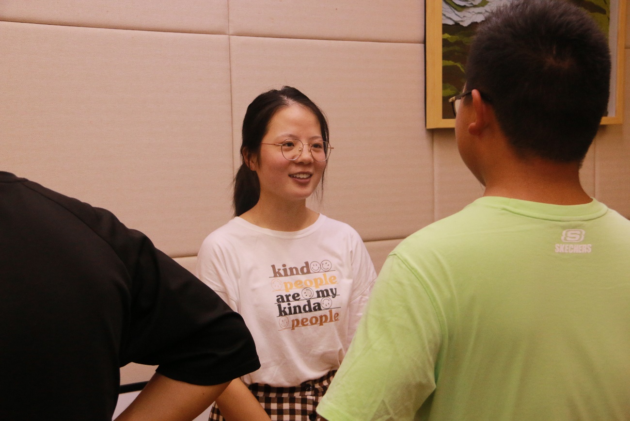 接着黄老师带大家进行了第一个暖场游戏,游戏共有询问相同爱好和抽号码回答问题两种规则,通过暖场游戏同学们不但能够介绍自己的兴趣爱好、习惯秉性等等,还能够使有共同特征的同学互相打招呼问好,彼此交流。这样的方式让同学们互相间更加了解,氛围逐渐热闹起来。