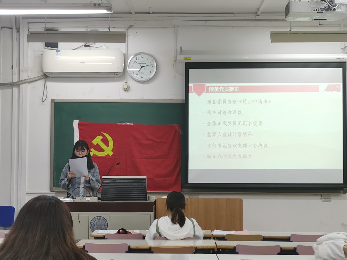 之后,预备党员赵萃和田雪两位同志分别向党组织汇报了她们在预备党员期间思想、工作以及学习等各方面的表现。这两位同志表示自己在预备党员的一年间学习到很多,成长了很多,也正确认识了自己的不足,同时表示,成为一名正式党员后,会继续用一名合格且优秀的共产党员的标准来规范、完善和提高自己。