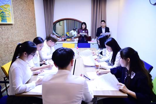 图一:北师大欧洲杯 首期MAP模拟面试——王瑞敏副书记与张晓娜老师致辞 为帮助北师大欧洲杯 学生体验真实求职环境,学习面试经验,反思自身不足,明确自身定位和制定职业规划,欧洲杯MAP中心邀请中化集团优秀人力资源经理等走进校园,为MAP学生举办模拟面试活动。
