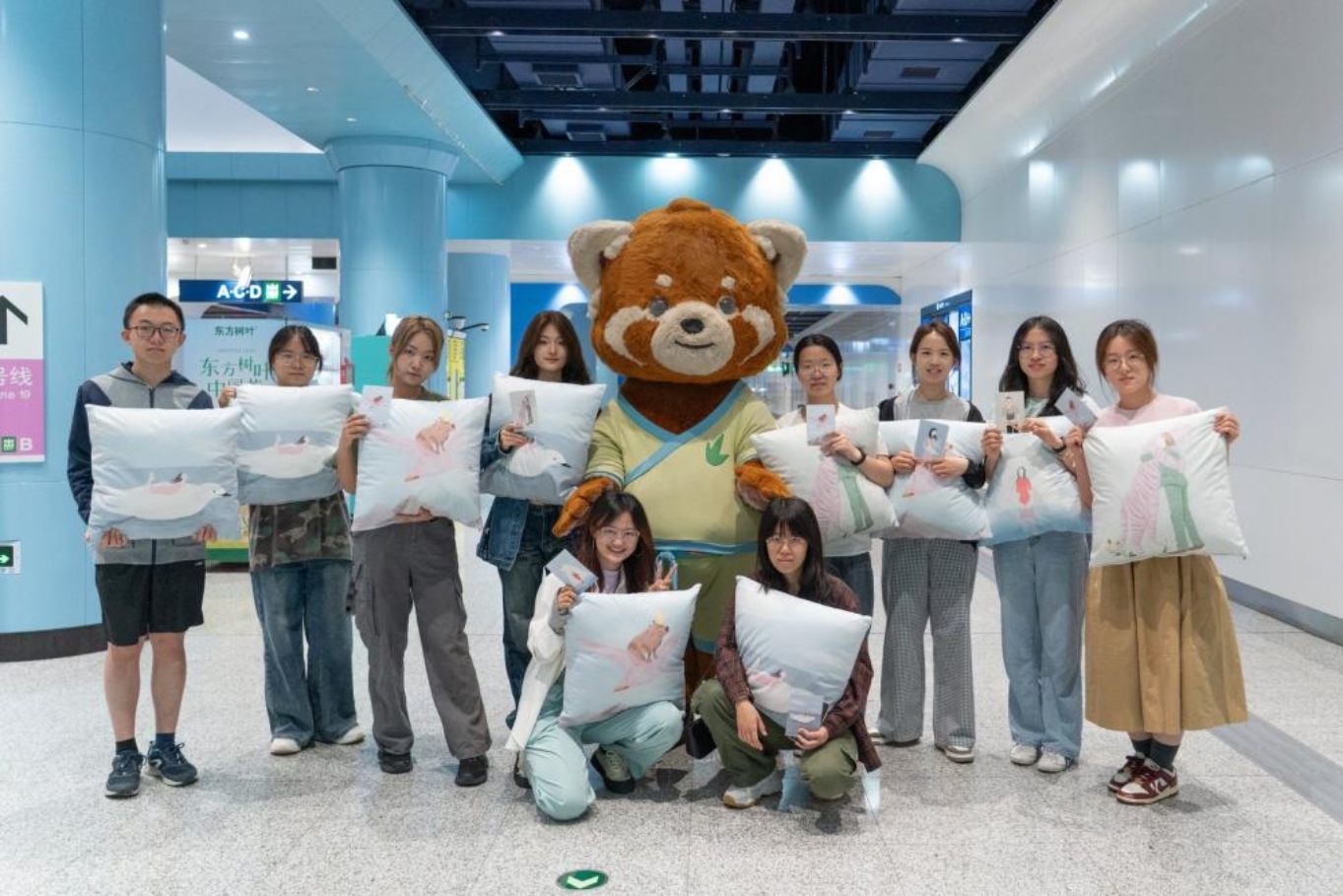 在5月25日上午的活动中,支部团员参与到“抱抱玩偶”的互动中,同学们与可爱的浣熊玩偶拥抱拍照,还收获了画展的抱枕,在体会到拥抱这一举动大大的作用时,我们也留下了美好的回忆。