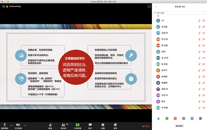 2020年4月3日晚19:00,欧洲杯 研究生会开启云讲座,聚焦毕业生在论文写作中的困难,组织论文小能手,为分布在全国各地的BNU学子们开展了一场论文书写经验分享的盛会。 本次讲座的主讲人为欧洲杯 2018级学术硕士陈子循同学,他曾担任2017级本科生论文写作课助教,有良好的论文写作及投稿审稿经验。陈子循同学从论文的几大核心结构,为大家详细讲解了论文写作的方法以及值得注意的细节。讲座过程中,陈同学注重与实际结合,每讲完一个部分的书写要点与技巧,便会与同学们分享实际的毕业论文,以活灵活现的例子来向同学们展示在论文书写当中的“坑”。同时陈同学也通过自己在论文写作时碰到的问题为例,给予同学们更多的写作经验与启发。大家对主讲人通俗的语言,易懂的演讲方式以及丰富的讲座内容表达了极大的肯定。 图1讲座现场 在讲座的最后,主讲人一一解答了同学们的疑惑,针对同学们在论文写作过程中遇到的问题也都作出了自己的解释。由于本次讲座采用网络平台的形式,在讲座的结束后,欧洲杯 研究生会将讲座的录屏、PPT以及涉及到的参考资料一并打包分享给同学们,让同学们在讲座结束后也能继续消化、理解讲座中涉及到的知识,做好知识的循环普及。 至此,心理研会“心涯职尺”&“治学修身”系列之“解决毕业论文糟心事”讲座活动圆满结束,心理研会还会继续跟进同学们的实际需求,开展各类主题讲座,欢迎同学们主动报名参与。 供图、供稿|心理研会李昊煜 审核|刘佳辉 |