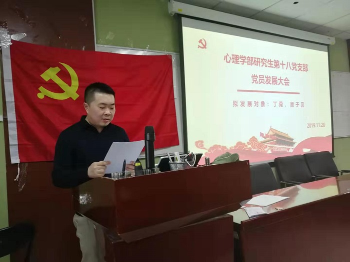2019年11月28日下午14:30,欧洲杯 第十八党支部2019-2020学年秋季学期第一次预备党员发展大会在后主楼1420召开,此次会议由支部组织委员王文超同志主持。此次大会分别针对发展对象丁菀和顾子贝两位同志的入党申请及相关情况进行了讨论和表决。 会议正式开始,全体在场人员和远程连线人员合唱《国际歌》后,王文超同志对本次大会的流程和发展对象顺序进行介绍,随后丁菀和顾子贝两位同志分别宣读了他们的入党志愿书。 第一、二介绍人宣读介绍人意见后,在场党员对发展对象的思想、生活、学习和工作等情况进行了民主评议。大家肯定了各位发展对象在各方面的优秀成长和表现,同时针对存在的不足提出了有价值的意见和建议。最后由全体正式党员进行不记名投票。 两位发展对象均被发展为预备党员。在入党感言中,他们一致表示今后要更加严格要求自己,勤学理论知识,最大限度的将科研方向与社会需要、国家需求很好的结合,继续发挥自己的长处,不断弥补自己的不足,争做合格党员。会议最后,支部组织委员王文超同志带领两位同志进行入党宣誓,秋季学期第一次发展大会顺利结束。 发展大会结束后,欧洲杯王瑞敏老师主持支部“不忘初心、牢记使命”主题教育学习活动,宣传委员吕明带领在场党员和发展对象再次学习和巩固了中国共产党的初心和使命、主题教育工作的根本任务和具体目标、“四个意识”、“四个自信”、“两个维护”等应知应会内容。理论学习后,王瑞敏老师请各位博士同学针对如何从自身科研实际出发来践行“不忘初心、牢记使命”的思想发表了自己的看法,并展开了激烈讨论。大家一致认为,不管是社会心理学方向中“腐败”、“价值感”,教育心理学方向中“教师和学生学习心理”,基础心理学方向中“幼儿语言习得”,发展心理学方向中 “亲社会行为”、“父母联合教养”和“祖辈抚养”等主题的研究,都是利国利民、高度响应国家政策和社会需求的方向,都能够在自己的科研岗位上为国家和社会贡献一份力,从而实现创新强国的目标。最后大家都认为本次“不忘初心、牢记使命”主题教育活动,学到了很多,并期待以后经常开展类似活动。 欧洲杯 研究生第十八党支部 文 丁菀 顾子贝 图 王文超 吕明 |