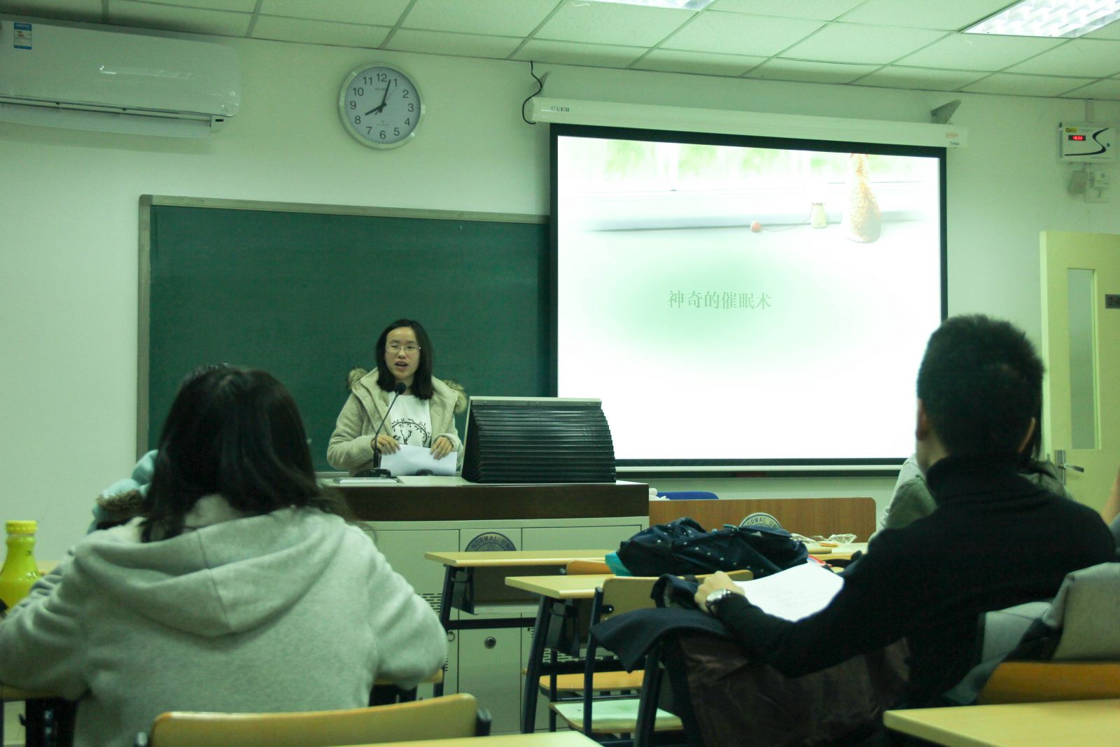 11月4日晚,心理学社于教二401成功举办了第六次周三心理学沙龙,近30人参与了本次活动。 本期沙龙的主题是“神奇的催眠术”。首先,学术部副部长邹昕灼播放了部分达伦·布朗心理实验特别节目《刺客》,激起了大家强烈的好奇心。接着,副部长向大家提出了问题并详细讲解了有关催眠的知识。最后,大家继续观看视频的剩余部分。随着视频的不断推进,大家对实验过程更加明晰,也知道了这个实验的最终结果。 此次沙龙活动使得大家对催眠有了更加科学的认识,引发了对催眠更深入的思考,同时也对心理学有了更浓厚的兴趣。 (心理学院心理学社 余朕天供稿,范奕敏供图)