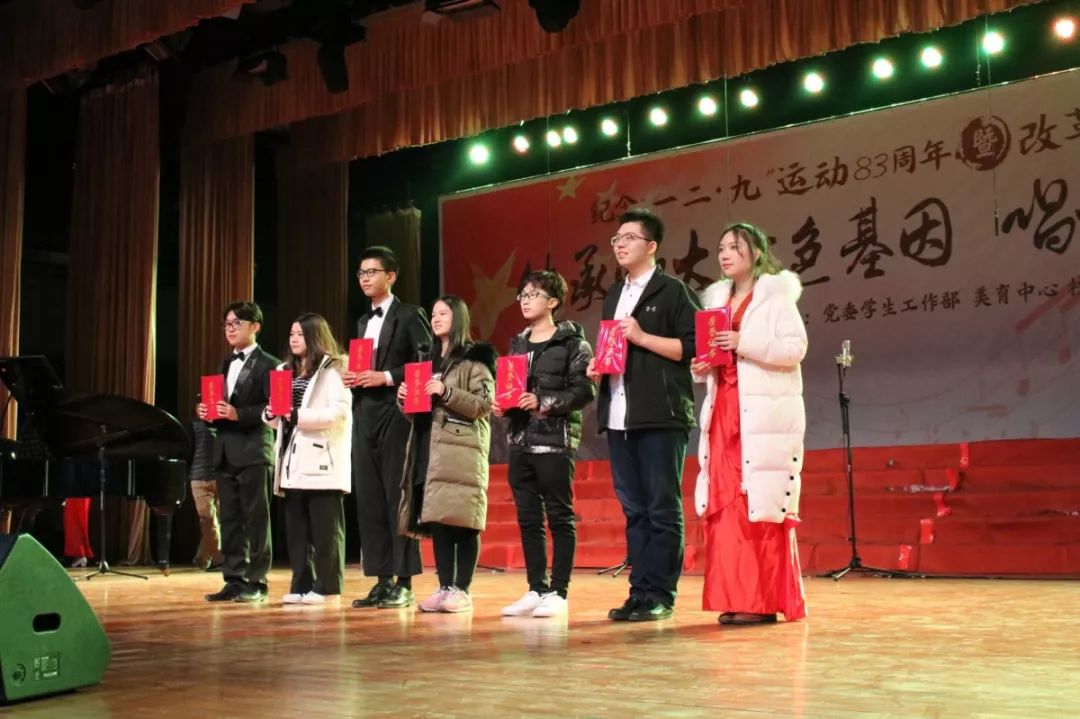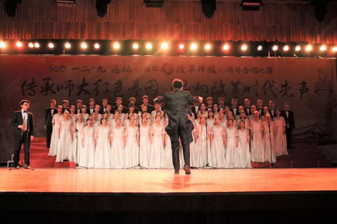 2018年12月9日晚7:00,“传承师大红色基因,唱响改革时代先声”纪念“一二·九”运动83周年暨改革开放40周年合唱比赛在学生活动中心举行,欧洲杯 合唱队作为倒数第三支出场的队伍,唱响一曲铿锵热烈的《走向复兴》,最终荣获大赛二等奖! 欧洲杯 合唱队主要由本科2018级本科生们组成,大家在集体中各展所长,共同努力。指挥唐佺、钢琴伴奏姜绍彬、管乐高偲博、鼓手李宁、镲手杜文露、朗诵文艺达以及每一个男高男低女高女中的小伙伴们,都是我们的表演中一抹绚烂的色彩! 指挥和乐器伴奏的同学们 歌曲以一段管乐独奏带入情境,引出文艺达抑扬顿挫的朗诵,并在钢琴、管乐、鼓和镲的渲染下,迎出合唱演员们洪亮悠扬的声音。表演赢得了台下观众的赞美与掌声。 钢琴伴奏姜绍彬上台领奖 最后,我们特别鸣谢:声乐指导张一凡,指挥指导郑涵予,化妆指导朱宁玉、李佳瑜、崔力元、李然及刘思燚,友情演出文艺达、刘亚康及杨春阳,刻苦认真训练的全体合唱队同学,以及所有为本次活动无私奉献的同学及老师。谢谢大家! 来源:欧洲杯 学生会 王艺铭供稿;苏碧纯、李佳瑜供图 |