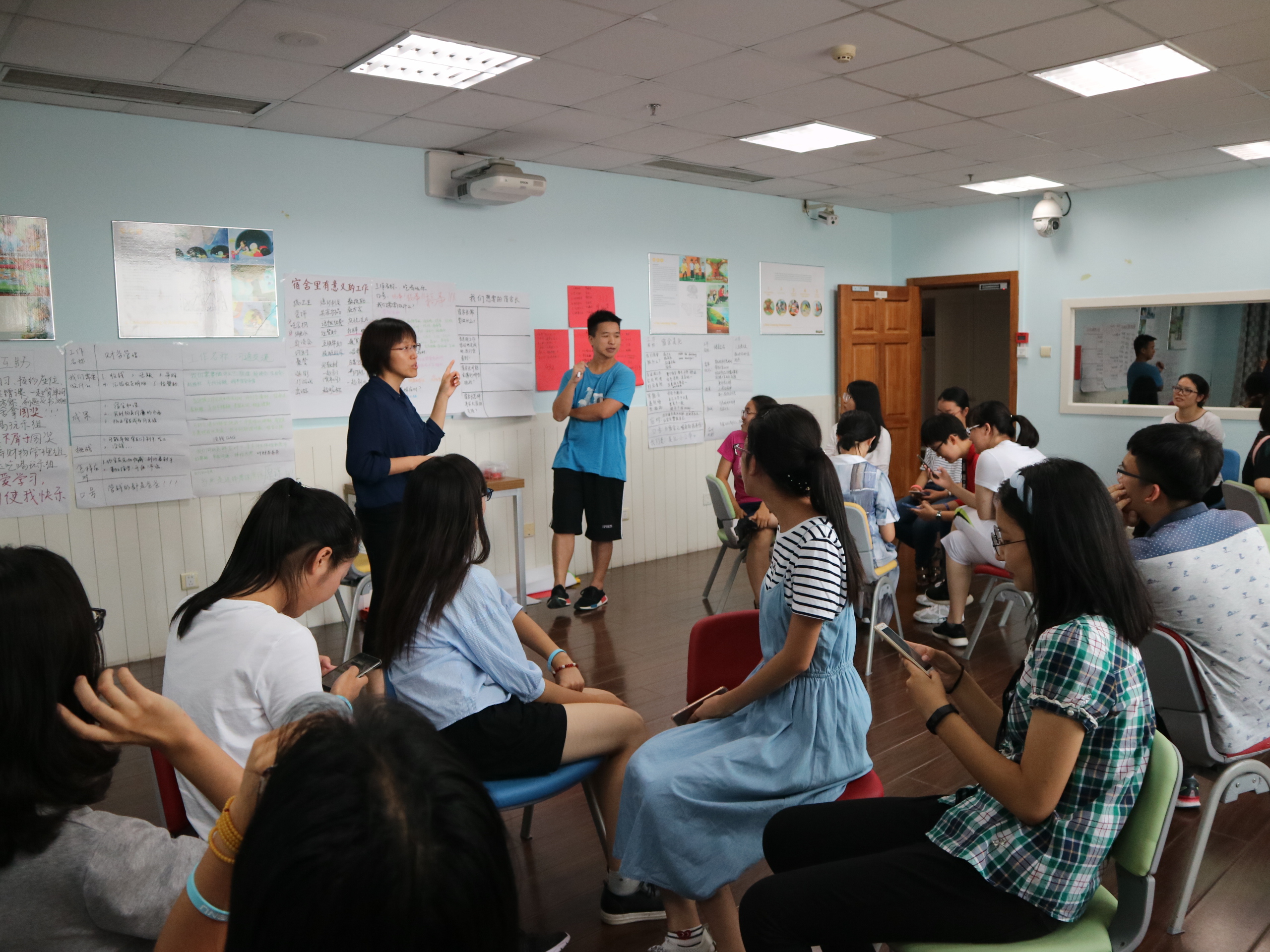 张丽霞老师带领学生一起头脑风暴 本次活动以班级为大单位、以宿舍为小单位,就“如何建设我们想要的宿舍”为主题,通过头脑风暴、小组讨论等活动形式,让同学们自己参与宿舍建设,在轻松、开放、热烈、团结的氛围中明确了在宿舍中角色,能为宿舍做哪些具体有意义的工作,并在活动中选举出宿舍长。 整个活动先是通过活泼生动的热身活动“马兰花开”开启,参与的同学听口令自由组合,通过被落单和被接纳的体验,感受到每个人都需要有归属感和价值感,由此引出归属于一个宿舍团队的重要。 活动开始前的热身活动 接着带导老师引导大家共同思考和头脑风暴,如果想建设一个美好团结的宿舍,需要做哪些有意义的工作?大家集思广益,从事件列举中提取关键词,大致归为协调作息、清洁美化、沟通交流、学业互助、文体活动、后勤保障等任务类别,然后邀请大家按照宿舍围成小圈坐下,宿舍成员根据任务类别逐一认领签字。 同学们以宿舍为单位认领宿舍里的工作 以宿舍为单位展示认领的工作 之后根据认领的任务类别,大家再进行相同任务话题的分组讨论,在讨论做某项具体工作时可能遇到的挑战和如何应对时,大家猛料和妙招齐发,观点和智慧碰撞,在带导老师的点拨、启发下,高潮迭起,大家对未来可能发生的宿舍问题有了更清晰的预见和更深度的思考。 以任务主题来展示 在活动的最后环节,1班、2班以坐空椅子的方式,让学生们体会到彼此的链接和集体的魅力。 1班、2班团体合影 3班和4班通过“说出心里的感谢!”环节,用彩色毛线球拉出了一张链接彼此的网,让大家在感动、欢笑中,收获满满。宿舍团队活动通过新颖活泼的活动形式增强了成员的沟通、协作,较快提升了宿舍乃至班级的凝聚力,相关的跟进、巩固的系列主题宿舍团队活动还将继续进行。 3班、4班同学合影 据悉,本次活动是在大学生中尝试社会情感教育的成功实践,社会情感教育(Social Emotional Learning)SEL是由Daniel Goleman和Eileen Rockefeller Growald于1994年创建的美国伊利诺伊大学的非营利组织“学术、社会和情感学习”(简称CASEL)发起的。SEL的五项核心技能:自我意识、自我管理、社会意识、人际关系技能、负责任的决策技能。我们希望将社会情感教育引起大学第二课堂,让大学生们在参与活动的过程中学习社会情感技能。 (欧洲杯 学工办) |