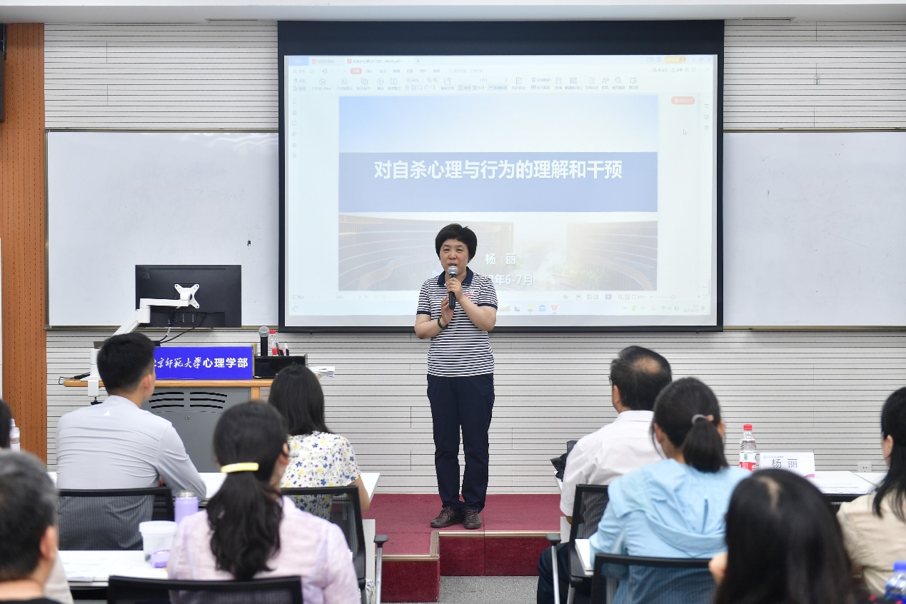 在开班仪式后,杨丽教授以“如何理解自杀心理与行为”开启了本期培训课程。杨丽教授在理论层面为学员们讲授自杀的定义、分类、影响因素等基础概念,在应用层面详细介绍了自杀风险的评估方法、自杀的个体干预技术与系统干预策略,并通过案例分析中示范自杀风险的评估流程和自杀的合作式评估与管理方法。此外,张继明副教授向学员们讲授自杀危机发生后的团体干预策略,并通过分组演练促进学员们运用团体干预方法的能力。