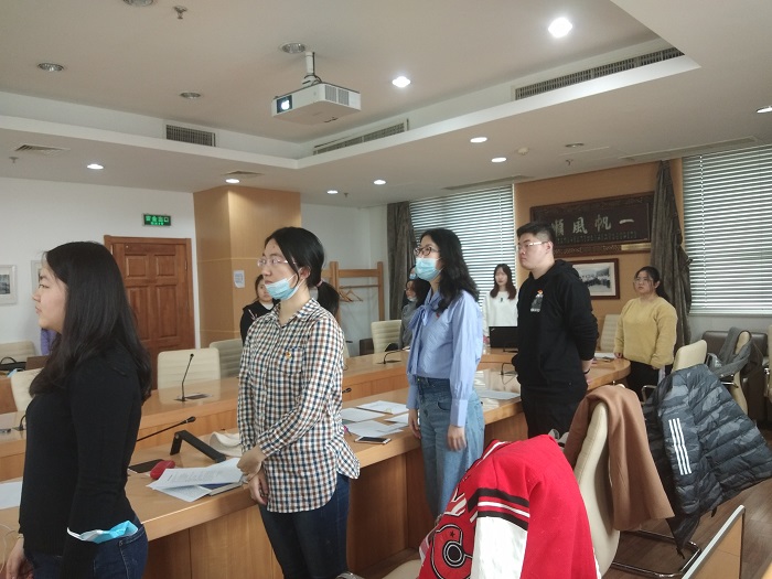 11月14日下午12:30,欧洲杯 本科生党支部2020-2021学年秋季学期第一次党员发展大会在后主楼1316召开。会议由支部书记苏茹昕主持,分别针对发展对象李嘉雯,刘雨童,李可心,王闻博四位同志的入党申请及相关情况进行了讨论和表决。 图一 全体到场人员合唱《国际歌》 全体到场人员合唱《国际歌》后,主持人苏茹昕同志对本次大会的流程及发展对象顺序进行介绍,随后李嘉雯,刘雨童,李可心,王闻博分别宣读了入党志愿书,并由第一介绍人宣读介绍人意见,之后与会同志对发展对象的生活、学习、工作情况进行了民主评议,最后全体正式党员进行了不记名投票。 图二 全体合照 四名发展对象均被发展为预备党员,他们也发表了自己的感想,表示感谢大家的认可,以后会更加积极主动参与支部的活动,更加严格要求自己。最后,全体进行合照,秋季学期第一次党员发展大会顺利结束。