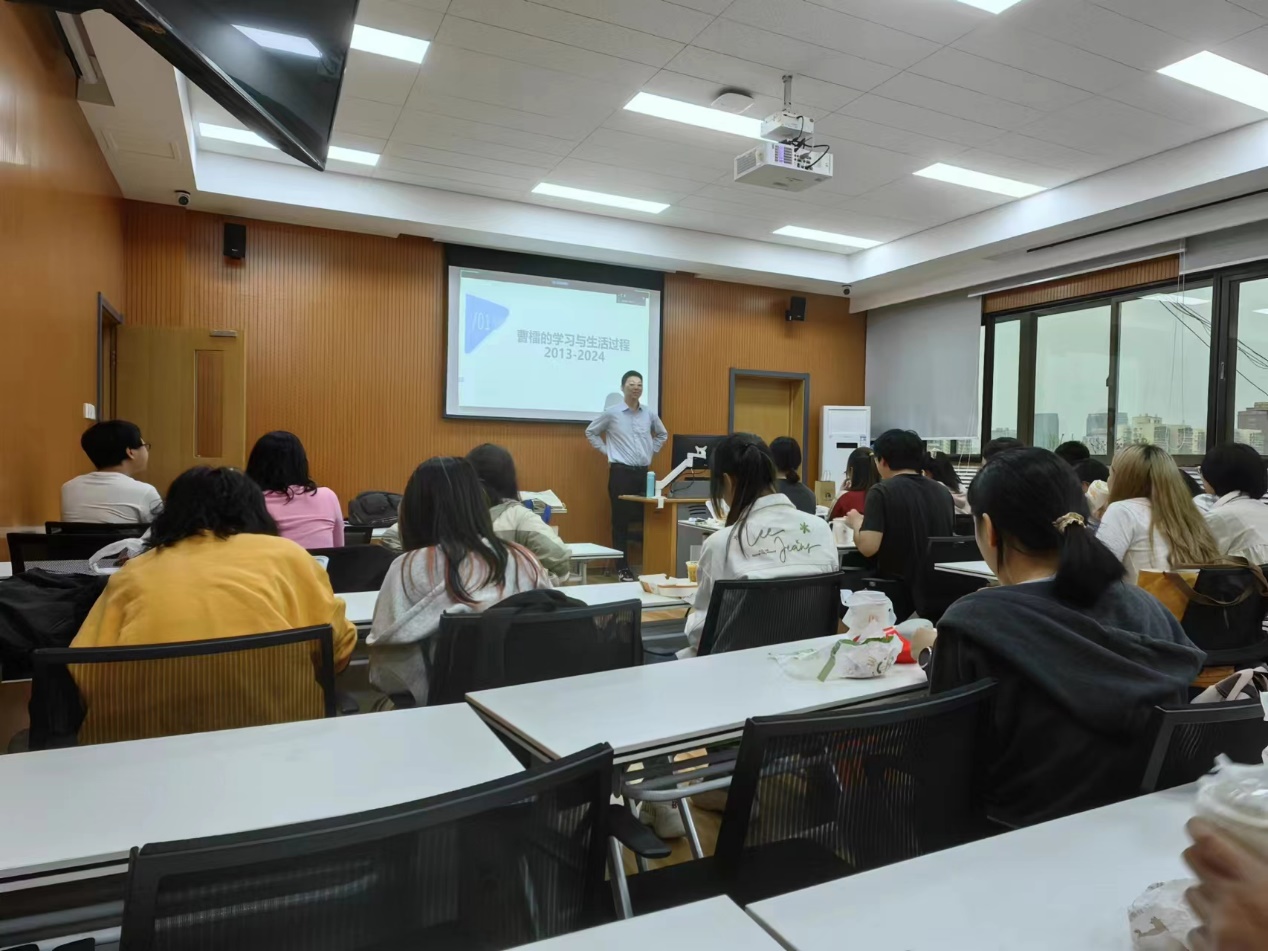 2024年4月13日,23级励耘班春季学期第三次周六之夜宣讲在金丰和顺利举行。讲座由胡月琴老师主持,邀请了曹檑和牛海晶老师面向23级励耘班的学生进行宣讲。 首先,曹檑老师为同学们介绍了他自身的经验,讲述了他个人的学习和生活经历,分享他的研学经验。