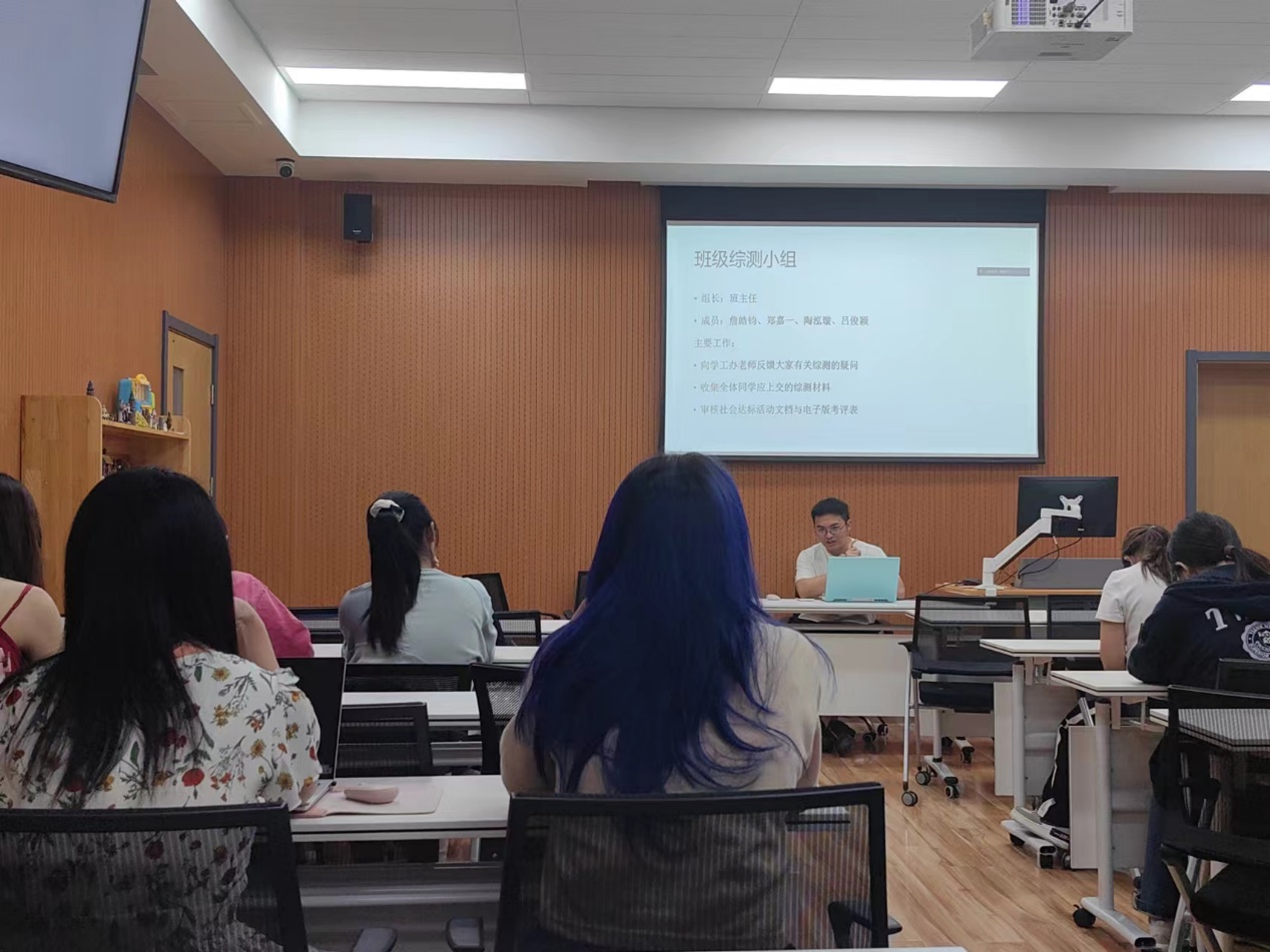 之后,詹皓钧同学介绍了班级的综测小组,本次的综测审核由班级的综测小组承担,也详细的告知大家综测的注意事项以及所需要填写的材料,并且认真回答了同学们的相关问题。