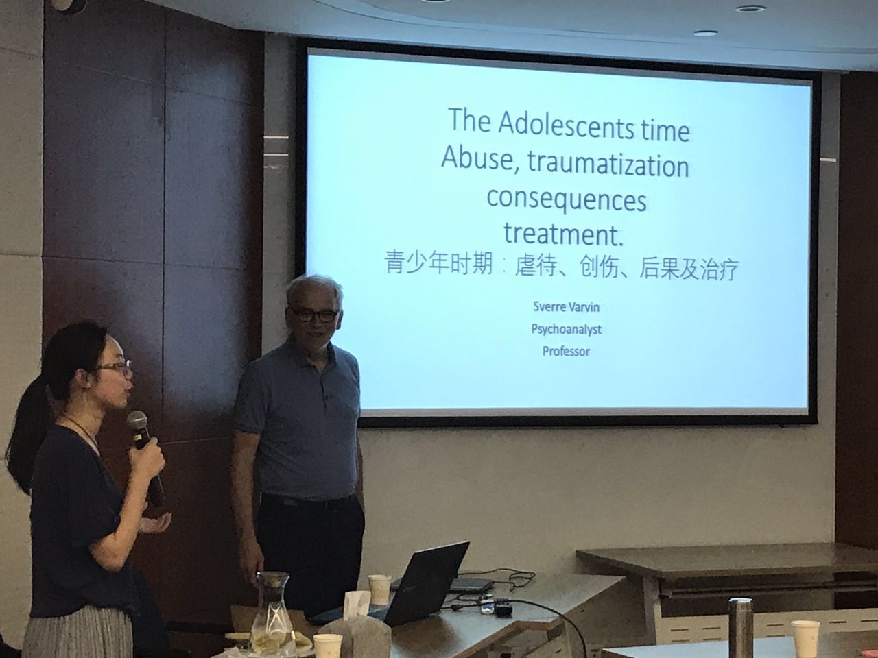 4月29日下午,前国际精神分析协会副主席Sverre Varvin博士来我部心理健康服务中心举办主题为《青少年时期的虐待、创伤、后果及治疗》的讲座。讲座面对心理学院的教师与同学、以及中心咨询师开放,参与人数约为50人。 讲座介绍了青少年时期的常见压力来源,代际创伤的传递以及临床案例与治疗手段,并与到场的学院相关工作者讨论了处理青少年时期创伤的基本方法。 在讲座过后,Varvin教授为中心内部十余位咨询师进行了关于青少年虐待、创伤案例的督导,为中心咨询师处理复杂创伤个案提供了有力的支持。 备注: Sverre Varvin教授 曾任国际精神分析协会副主席 精神分析师,精神分析培训师 挪威奥斯陆及阿克胡斯大学学院教授 国际精神分析协会中国委员会主席 首名国家外专局的高端外国临床心理学专家 (心理健康服务中心) |