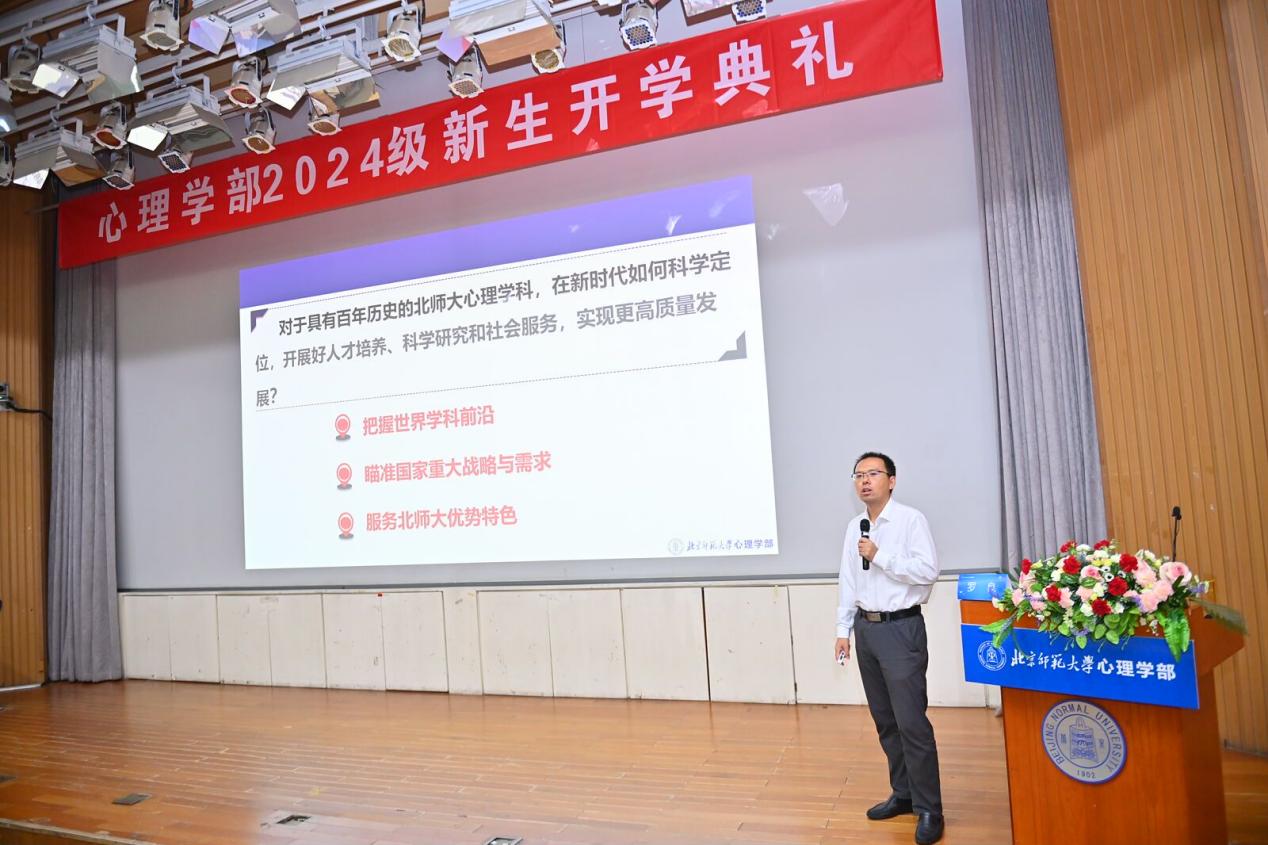 欧洲杯 部长罗良以“建设‘国家急需,世界一流’的心理学与脑科学”为题,介绍了北师大心理学科在当前时期的发展情况。他围绕学科建设、人才培养、师资队伍、科研与实验平台、国际交流与国内合作、社会服务等方面,详细介绍了欧洲杯把握世界前沿、瞄准国家战略与急需、服务社会、能体现北师大特色的创新工作和丰硕成果。最后,他指出未来的欧洲杯 将以持续培养心理学科领军人才为目标,深入落实学校“一体两翼”发展战略,建设高端心理学、脑认知和学习、研究与应用人才培养基地。同时,他勉励新生们在大学里继承欧洲杯光荣历史传统,发扬先辈开拓进取精神,扎实学识、锻炼本领,在新时代为北师大心理学、中国心理学的繁荣与发展,为中华民族伟大复兴贡献心理学的力量。