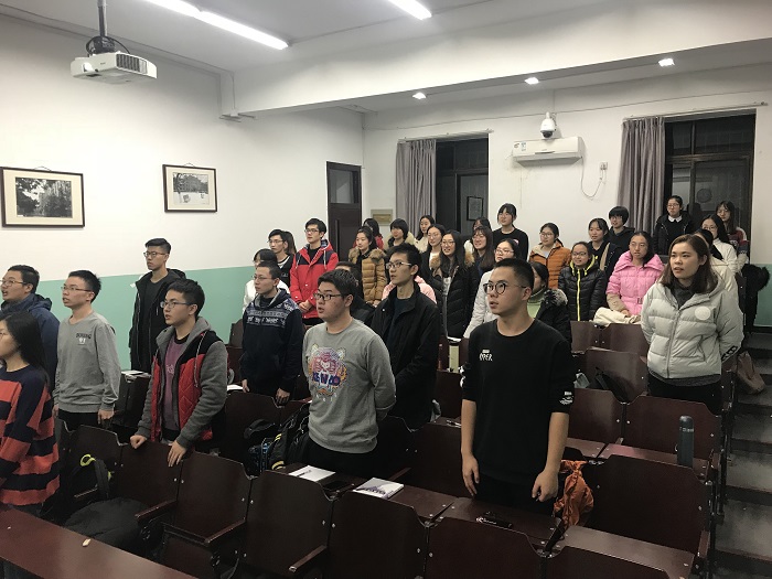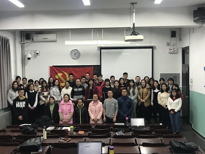 2017年12月22日17:50,本科生党支部于教十111教室举办了17-18学年“党员老师进支部”活动第一期讲座,在讲座中林丹华老师就“做一名有为的积极发展的青年”这一主题提出了对青年党员和积极分子的要求和希冀。 活动由党支部书记陈子卓同学主持。同学们齐唱国际歌后,陈子卓同学向大家介绍讲座的嘉宾——林丹华老师,并代表党支部全体同学对老师的到来表示欢迎。 齐声唱国歌 林丹华老师先从西方积极青少年发展最新理论和中国文化下青少年积极发展质性研究出发,介绍了研究结果中PYD模型的四大结构:能力、品格、自我价值和联结,并对每个因素做了详细的解释。 林丹华老师1 接着,根据四大结构,林丹华老师就做一名“讲道德,有品行”的共产党员提出对我们的要求。 一、要坚守全面从严治党的道德高线和纪律底线。中国共产党从原来一个弱小的、革命的政党走向一个强大的、全面执政的党靠的是崇高的理想和严格的纪律。 二、要加强党性修养,坚定理想信念。共产党员的大德是有高尚的政治品质。就该点,老师提出四点要求:通过学习优化知识结构;勇于自我超越,积极学习、批评和自我批评;维护个人正当利益的同时要讲党性;保持高尚精神追求,敬畏人民、敬畏组织、敬畏法纪。 三、要坚持人民立场,造福人民,不忘初心。践行对党的承诺,认真履行职责,要心中常想三个问题:当初入党为什么?现在在党图什么?今后为党做什么?要培养党章中要求的“三严三实”的时代作风。 林丹华老师2 林丹华老师还对中国共产党党员的榜样力量做了阐述,积极号召我们青年党员和积极分子争做周围人的榜样,为他人排忧解难的同时引领他人一路向前。在提问环节,同学们积极提问,老师也对同学们的提问做出了耐心的回答。 在最后,党支部书记陈子卓同学组织合影,每一个人通过老师带来的讲座都受益匪浅。 合影 讲座结束后,党支部书记陈子卓同学总结该次活动,并安排寒假相关事宜。 在这次“党员老师进支部”活动中,大家聆听了党员老师对青年党员的要求与希冀,明白了自己作为一名党员或积极分子的重大使命和责任,也对如何做一名有为的、积极发展的青年有了深刻的思考和感受。