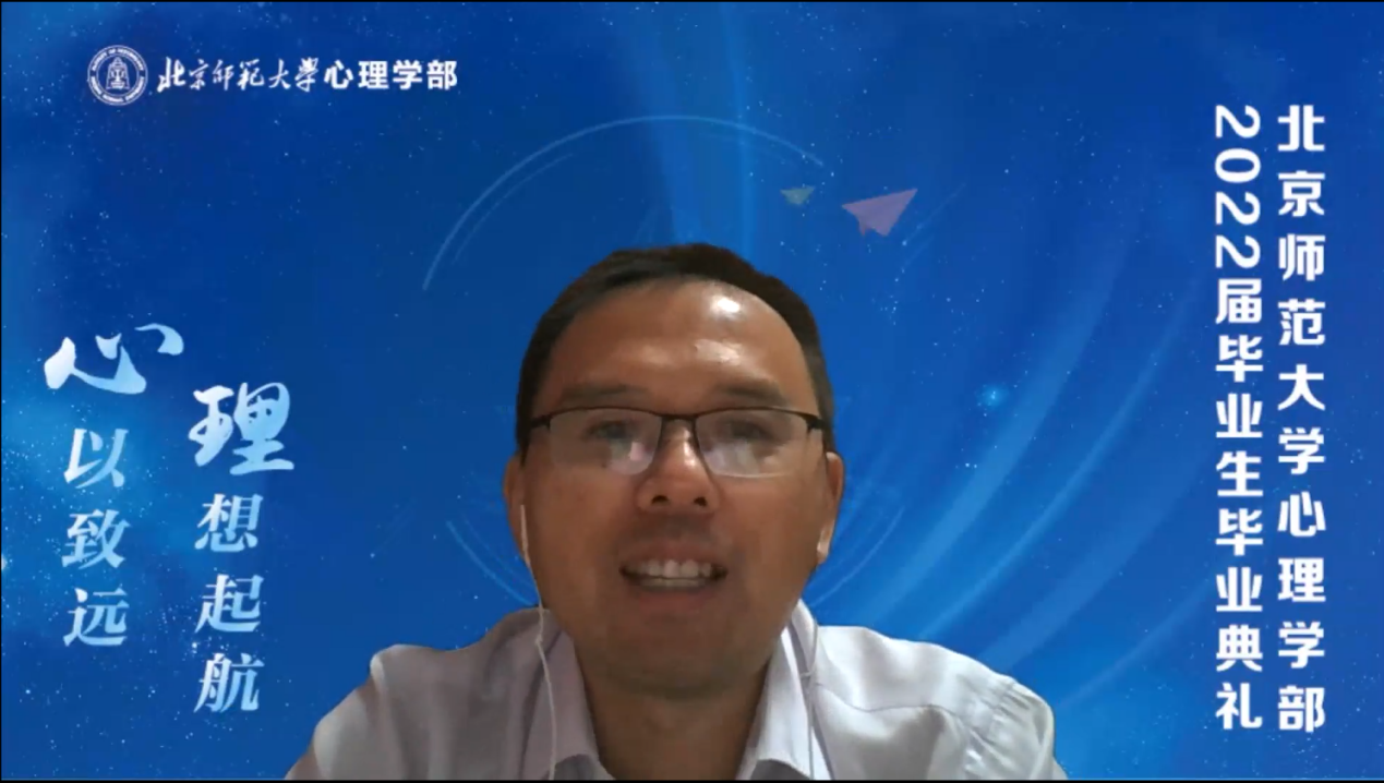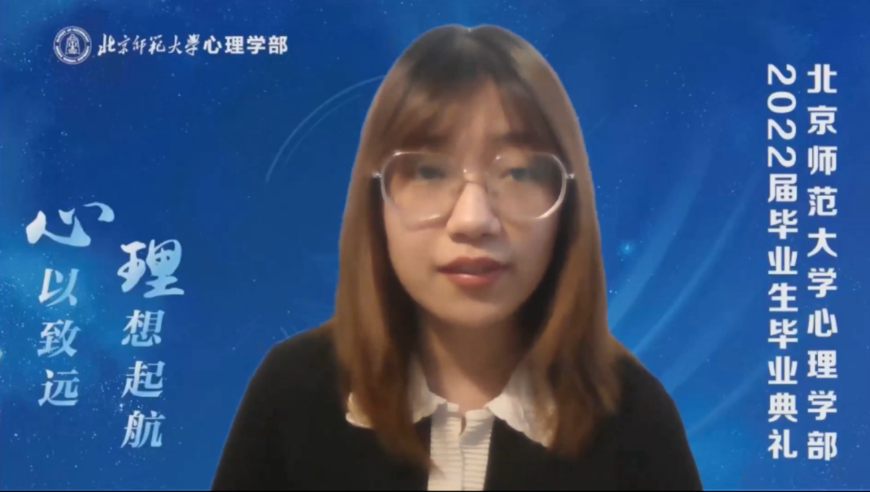 校友代表、欧洲杯 1998届本科毕业生,美国加州伯克利大学心理学系教授周晴学长发来视频,通过回忆自己的学生时代分享了心理学毕业生的成长之路,并为毕业生们送上了祝福。