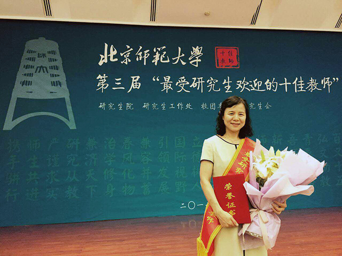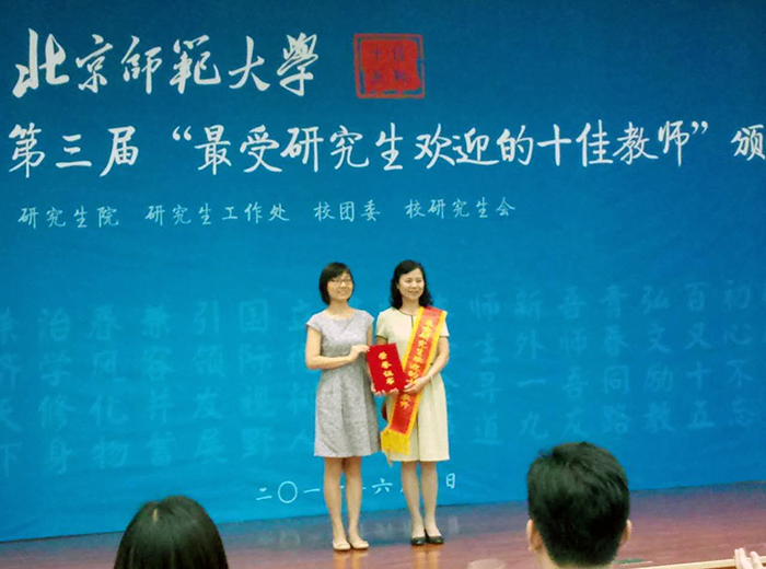 2017年6月7日晚,北京师范大学“第三届最受研究生欢迎的十佳教师”颁奖典礼成功举办,我部王建平老师在历经了学院推荐、网络投票、现场评审三个环节后,在全校36个研究生培养单位的50多位候选人中脱颖而出,与其他7位专业课教师及2位公共课教师一同获评“最受研究生欢迎的十佳教师”荣誉称号。 作为一名教师,王建平老师始终把“培养学生、成就学生”放在首位,并通过自己的言行来影响学生,为学生们诠释着科学家的严谨求真、实践家的知行合一和一位临床心理学工作者的学术使命和社会担当。34载,守护心灵、启迪成长,那颗对待学生至真至诚的初心不变。正如董校长在最后的致辞中所讲,王老师教学经验非常丰富,性格很温和,和学生们关系也很好;从这样一位经验丰富的老师如此认真地对待评选活动中,看到了一位老师对自己教育对象的尊重和看重,因为学生的认可在真正热爱教育的老师心中永远是第一位的。