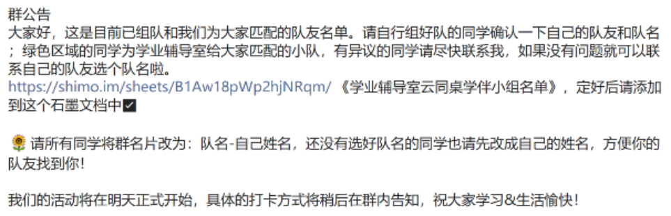 考虑到疫情背景下部分同学尚未返校以及线上授课的情况,为了提升同学们线上学习的学习效率,学业辅导室于5月18日-6月7日依托于微信群与小程序“小打卡”举办了第二期云同桌学伴活动,希望大家可以通过学伴之间的相互促进,提升学习动力,养成良好的学习习惯。