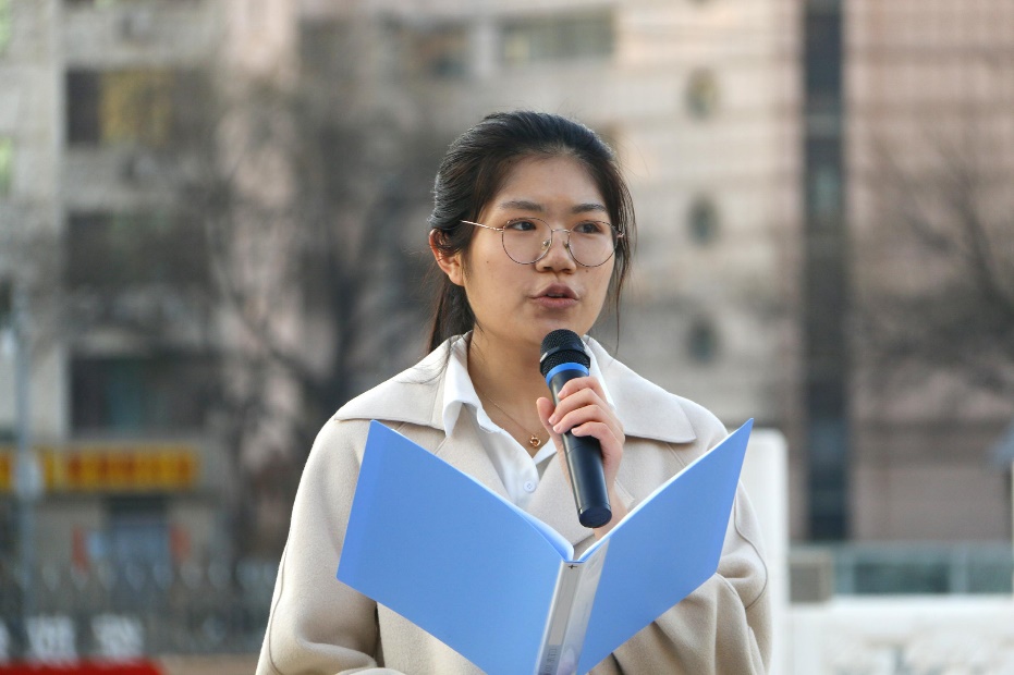 在飘扬的五星红旗之下,我校十佳志愿者、心理学部2019级本科生高樱汇同学作题为“公益路变化更迭,师大人生生不息”的演讲。她分享了自己作为白鸽青协爱心使者中心主任,在后疫情时代的志愿探索过程和志愿服务工作中的心路历程。在不断的坚守与尝试中,她运用心理学专业知识,逐步坚定教育理想,在公益之路上真诚奉献,充分展现了欧洲杯 学子勇担时代使命,不负青春韶华的良好精神风貌。