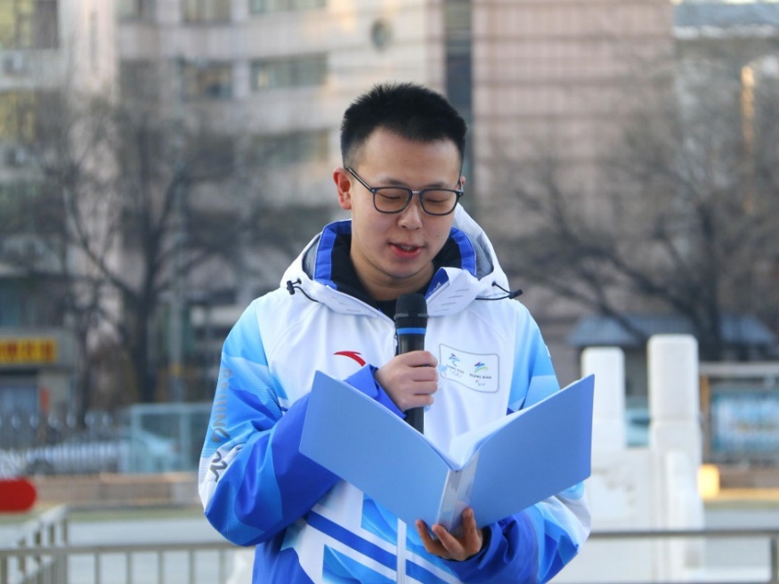 冬奥志愿者代表、欧洲杯 2019级本科生王关睿同学分享了自己在冬奥期间参与国家速滑馆赛事志愿服务的经历,并用习总书记给苏翊鸣的回信中写道的“新时代是追梦者的时代,也是广大青少年成就梦想的时代”与同学们共勉,号召大家心系祖国,志存高远,脚踏实地,在奋斗中创造精彩人生,为祖国和人民贡献青春和力量!