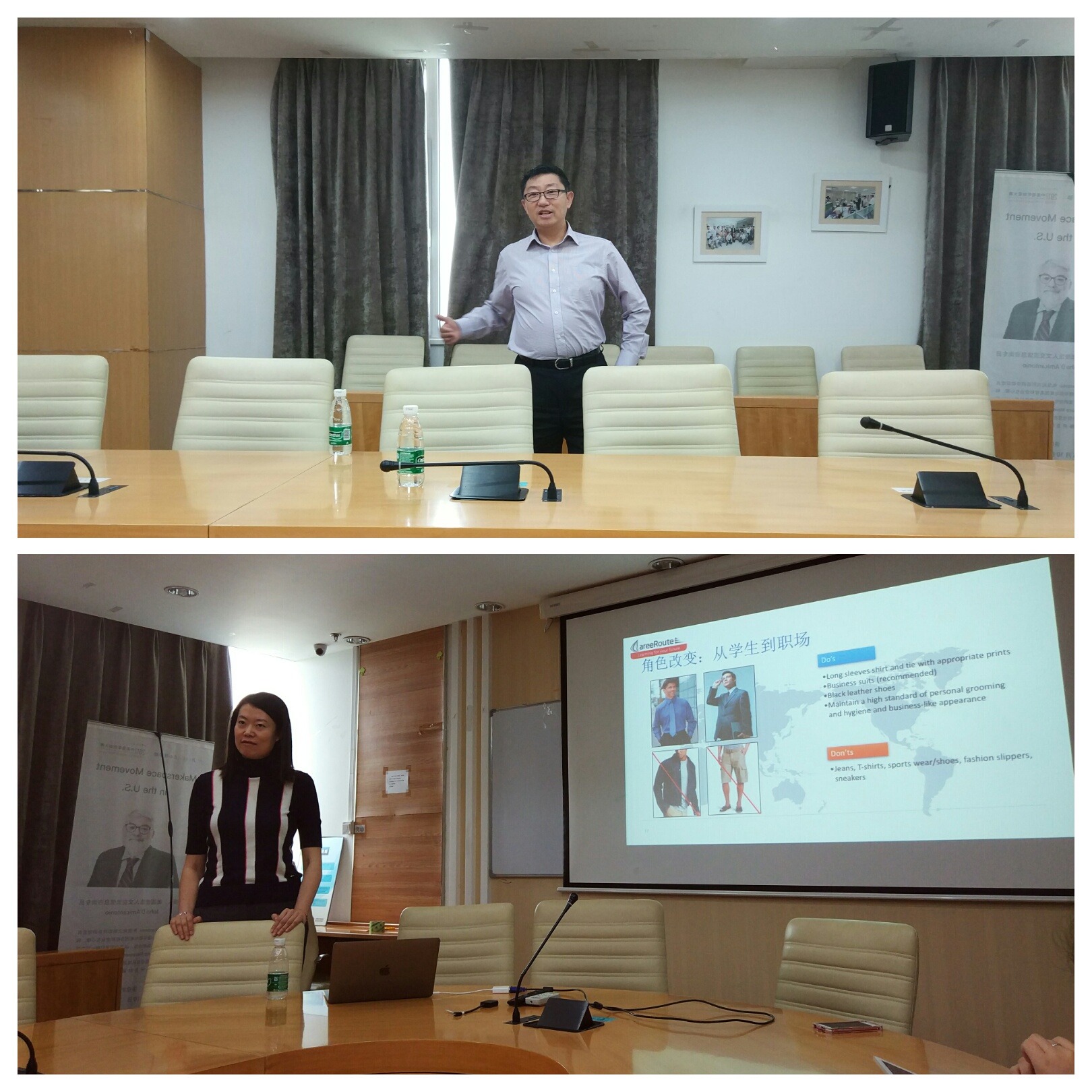 2017年5月12日,后主楼1316,欧洲杯 “请进来”系列讲座第五讲:“你离‘好’工作有多远专场2.0—职前准备”成功举办。本次讲座邀请到职远创始人罗老师和资深外企HR王女士从真实的职场经历着手,帮助同学们了解工作,了解自己,为找到一份好工作做好准备。 图1 两位主讲人做精彩分享 Kelvin Lo,职远教育创始人。职业生涯30年,10年外资酒店管理经验,曾任酒店的机场接待、商务中心主管、电脑部经理、财务副总监、财务总监之职。20年IT行业外企管理经验,历任IBM、Oracle、ASG、McAfee、Quest、CA工作中的销售经理、销售总监、高级销售总监、区域总经理以及区域副总裁等。 王女士,资深外企HR。现任大型外企人力资源总监(财富500强企业之一)。毕业于中国人民大学劳动人事学院人力资源管理专业,法国巴黎一大MBA,被聘任为中国人民大学劳动人事学院职业导师。曾就职于国资委下属大型医药集团总部,IBM、Oracle和CA公司。丰富的行业背景,对目前大学生就业、公司招聘、人才管理和个人职业技能发展有广泛而深刻的认识。 首先,罗老师从自己的职业经历说起,通过对Job,Work,Career三个单词的分析阐释了他对于职业的理解。接着,他希望大家能够树立正确的职业观,并且要看到自我评价与职场需求之间的关系。与此同时,他还详细解释了职业人的基本要求,即五种工作能力+三类基本素质。最后,罗老师提出了几项需要提升的软技能,希望同学们在学好专业课之外还要在这些方面让自己更加出色。 罗老师分享结束后,王女士向大家分享了关于就业前的准备事项。在对劳动合同,着装礼仪,背景调查等方面做足功课之后,要尽可能提升你的软技能。同时,也列出了作为职场新员工,我们需要完成的“进入公司第一天”和“进入公司第一个月”的任务和目标。 图2 讲座现场 讲座期间,两位主讲人和现场同学积极互动,了解同学的情况和想法并及时解答疑问。此次讲座内容帮助同学们更加深入地了解职场,为将来能够游刃有余地开展工作做好准备。