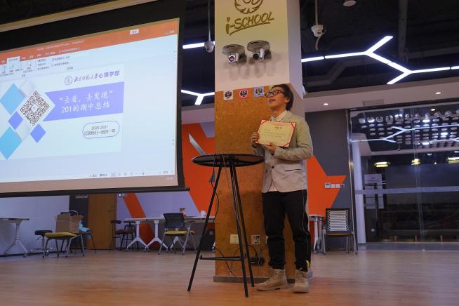 2021年11月13日,2020级心理一班的期中活动“去看,去发现”在金丰和路演厅顺利举办。一班的班主任王文超老师、两位学长导师和一班的同学们参加了本次活动。本次班会由卢子昂同学和何菁淼同学主持。