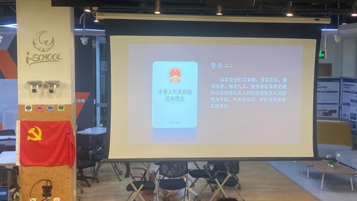 而后,同学们观看了安全机关制作的贴近研究生身份和实际生活的国家安全案例视频——《定向应聘的海归留学生》,提醒大家千万提防境外势力的诱惑、渗透和策反行为。
