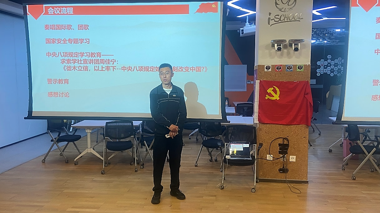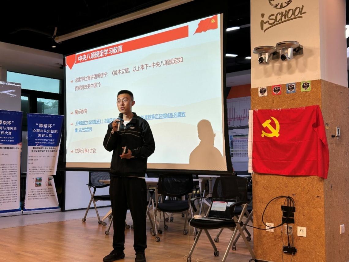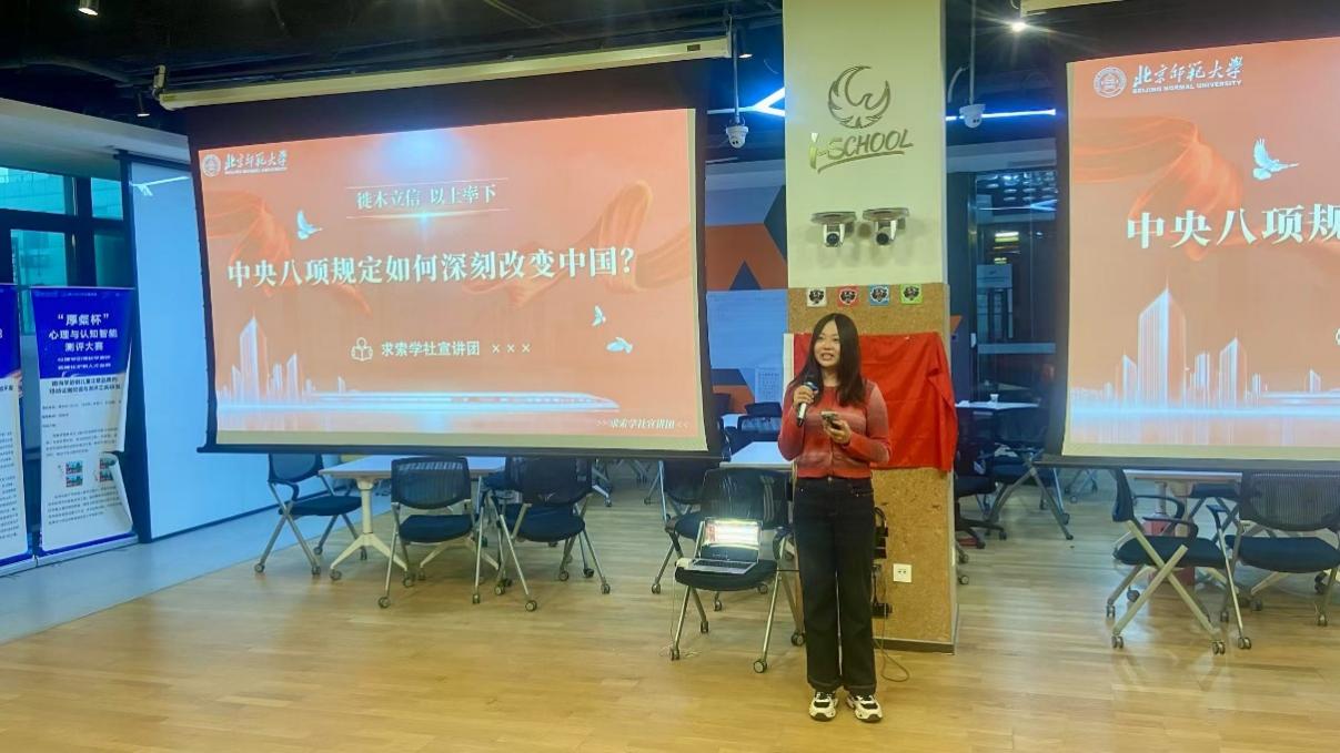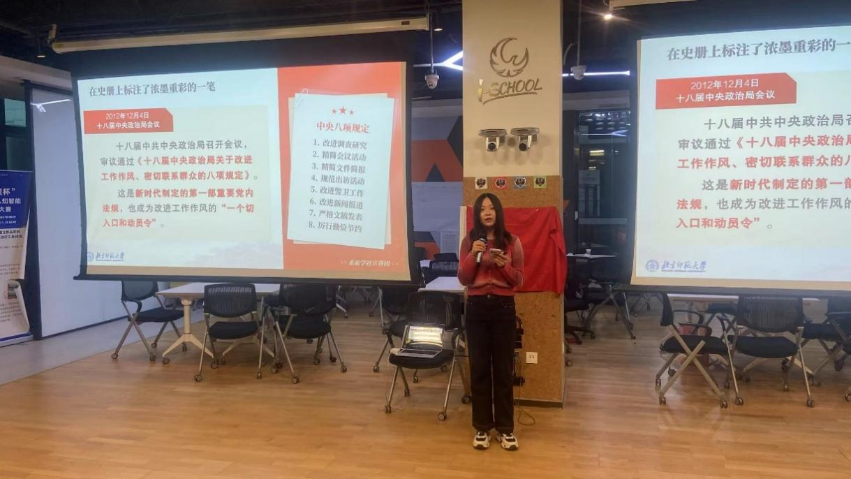 本次活动还邀请到了北京师范大学求索学社宣讲团成员周佳宁同志带来题为《徙木立信,以上率下—中央八项规定如何深刻改变中国?》的党课分享。