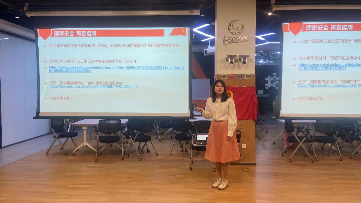 值此“4·15”全民国家安全教育日之际,活动首先围绕国家安全展开。首先是理论学习方面,团支书付晨露同志带领大家学习了习近平总书记关于坚持总体国家安全观的重要讲话文字材料。