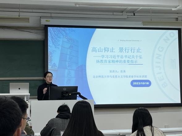 2023年10月18日下午,中共欧洲杯 委员会——研究生第三党支部召开了一场以学习习近平总书记关于弘扬教育家精神的重要指示为主题的座谈会。本次座谈会邀请到北京师范大学马克思主义文学院求索学社宣讲团的范尧女士,为与会者阐释并讨论这一重要指示的深刻内涵与重大意义。 习近平总书记的致信,是对全国优秀教师代表的亲切慰问,也对中国教育事业的高度关切。在信中,总书记强调了教师的伟大职业,他们在培养新时代人才中扮演着不可或缺的角色,是社会主义建设事业中的重要力量。