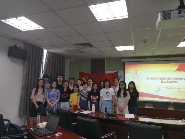 研究生第六党支部于2019年5月23日,在后主楼1420召开了党员发展大会,共有11名党员和3名预备党员参加,另有3名党员因事请假。支部理论导师周志荣老师出席了本次发展大会。党支部书记杨颖同学主持会议。 首先全体人员起立,奏唱国际歌。之后党支书杨颖对本次发展大会进行了说明。