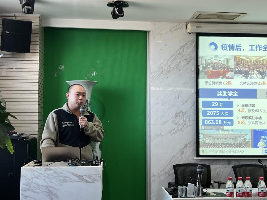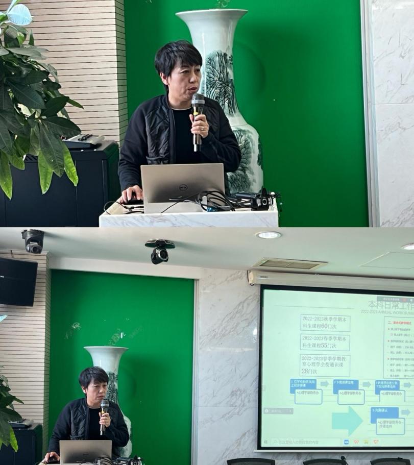 学工办公室主任曹昌健总结了学工办公室工作总结和工作计划,加强学生调研交流,畅通师生沟通渠道,聚焦学生身心健康,工作更加规范化、精细化和科学化。