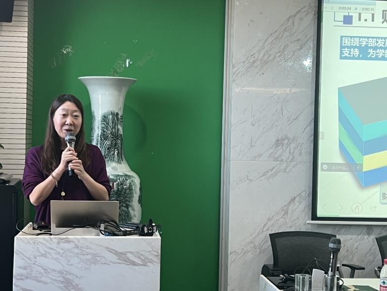 外事办公室主任陈芳竹对师生国际交流、高端一流国际合作平台、全英文课程、国际交流协议管理制度及工作反思等方面进行了汇报总结。
