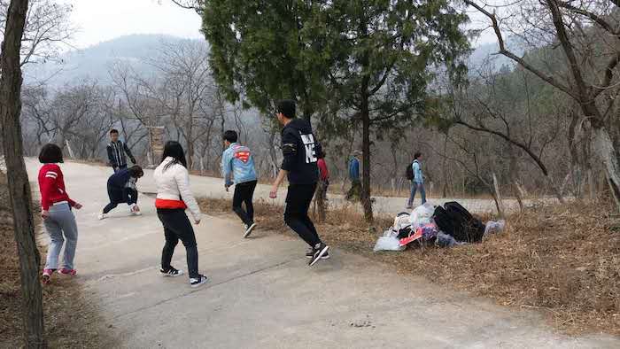 中午11点左右,同学们登上了百望山的顶峰,接着班委便组织同学们开始了“狼人杀、扔沙包、UNO”等小游戏,增进了彼此的了解,培养了团队默契。