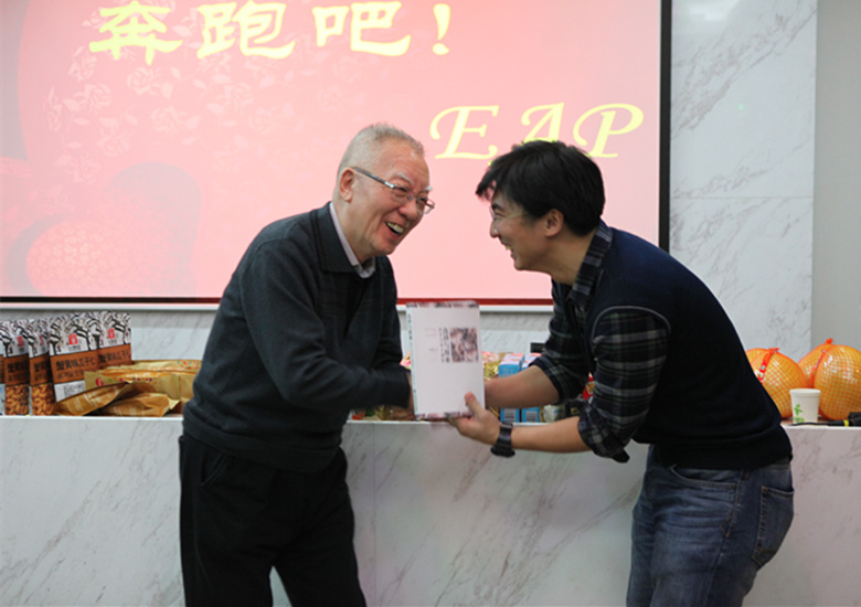 2015年1月19日,刚刚结束了一个学期内容繁多的课程与考试,北京师范大学心理学院2014级应用心理专业硕士EAP方向的学生依旧精力充沛,在本学期课程的最后一天,组织举办了一场“奔跑吧,EAP”的主题集体活动。本次活动在心理学院MAP中心的支持和帮助下,老师同学们各显神通,将这次活动从入场到结束都组织的有声有色,有年味有动感,有惊喜有感动,有收获有成长。 活动的热身节目是非常具有中国年味的猜灯谜,这一节目弥补了同学因学习要求而无法在家过元宵节的小小遗憾。猜灯谜结束后,80岁高龄的彭聃龄教授脸上洋溢着笑容走进了同学们的视野,这也是学院为2014级应用心理EAP方向的学生带来的第一大惊喜。彭聃龄老师慈祥的笑容和温厚的话语让同学倍感亲切,也让同学们回忆起学期初彭老师为大家教授普通心理学课程的温馨场景。同时,彭老师还将附有他签名题字的最新作品作为特等奖的奖品送给同学,更是让同学们的心里感到无限暖意。 图一 北师大心理学院彭聃龄教授向2014级应用心理专业硕士EAP方向的学生赠书 心理学院书记乔志宏教授,副院长林丹华教授、刘力教授、张西超教授,副书记王瑞敏老师,院长助理胡思源老师以及刘翔平教授都在百忙之中专程来和学生们一同庆贺一同游戏,这也是心理学院为EAP学生们带来的第二大惊喜。各位领导在致辞鼓励了2014级应用心理专业硕士EAP方向的学生之后,还参加了活动中的第一个环节-------萝卜蹲。在轻松愉快的气氛中,几位老师以及彭聃龄老师一同做起了萝卜蹲的游戏。在这个时刻,游戏已不止是游戏,更是搭建在老师和学生中间的桥梁;老师也不仅是老师,更是学生的亲密的家人和朋友。 图二 北师大心理学院领导参与2014级应用心理专业硕士EAP方向班学生活动 接下来的“你来比划我来猜”游戏更是让活动气氛在游戏选手的竭力表演中和观众的爆笑声中再度升温。游戏结束后,心理学院副院长张西超老师推着一个写着“EAP黄埔一期生日快乐”的蛋糕走进教室,把这场活动推向了高潮,也是学院MAP中心为EAP学生们精心准备的第三个惊喜。带着惊喜和感动,师生们同庆2014级应用心理专业硕士EAP班诞生一周年,以及同庆几位在1月份出生的同学生日快乐。彭聃龄老师感慨地说:“每当这种时候,我们就没有年龄差异了,男生都是小伙子,女生都是小姑娘。” 图三 北师大心理学院2014级应用心理专业硕士EAP班集体活动气氛温馨,惊喜不断 最后的“当然了”游戏和踩气球游戏在同学们兴奋的欢呼中圆满地结束了这次狂欢party,也结束了2014级应用心理EAP方向专业硕士第一学期的课程。浓浓的不舍和热切的期待,都会化作EAP的同学们更强有力的动力,在今后的课程中有更出色的表现,不仅让我们为北师大心理学院骄傲,更让北师大心理学院为我们自豪。 图四 北师大心理学院2014级应用心理专业硕士EAP班集体活动集锦 也在此感谢2014级应用心理专业硕士EAP方向的学生王凯、王坤、施鸿宇、逯小方、崔颖丽、高逸超、金昊天、孙美宇、戴铮然几位同学利用课余时间精心筹划了了此次班级主题活动;感谢活动主持王石、刘晓曦、纪圆北和黄凯莉同学;以及亲自题写的对联,为活动增添气氛与诗意的高川同学。 图五 北师大心理学院2014级应用心理专业硕士EAP班集体活动留念合影 新年新气象,带着梦想奔跑吧,EAP! 供稿人:2014级MAP-EAP班 张武悦同学 |