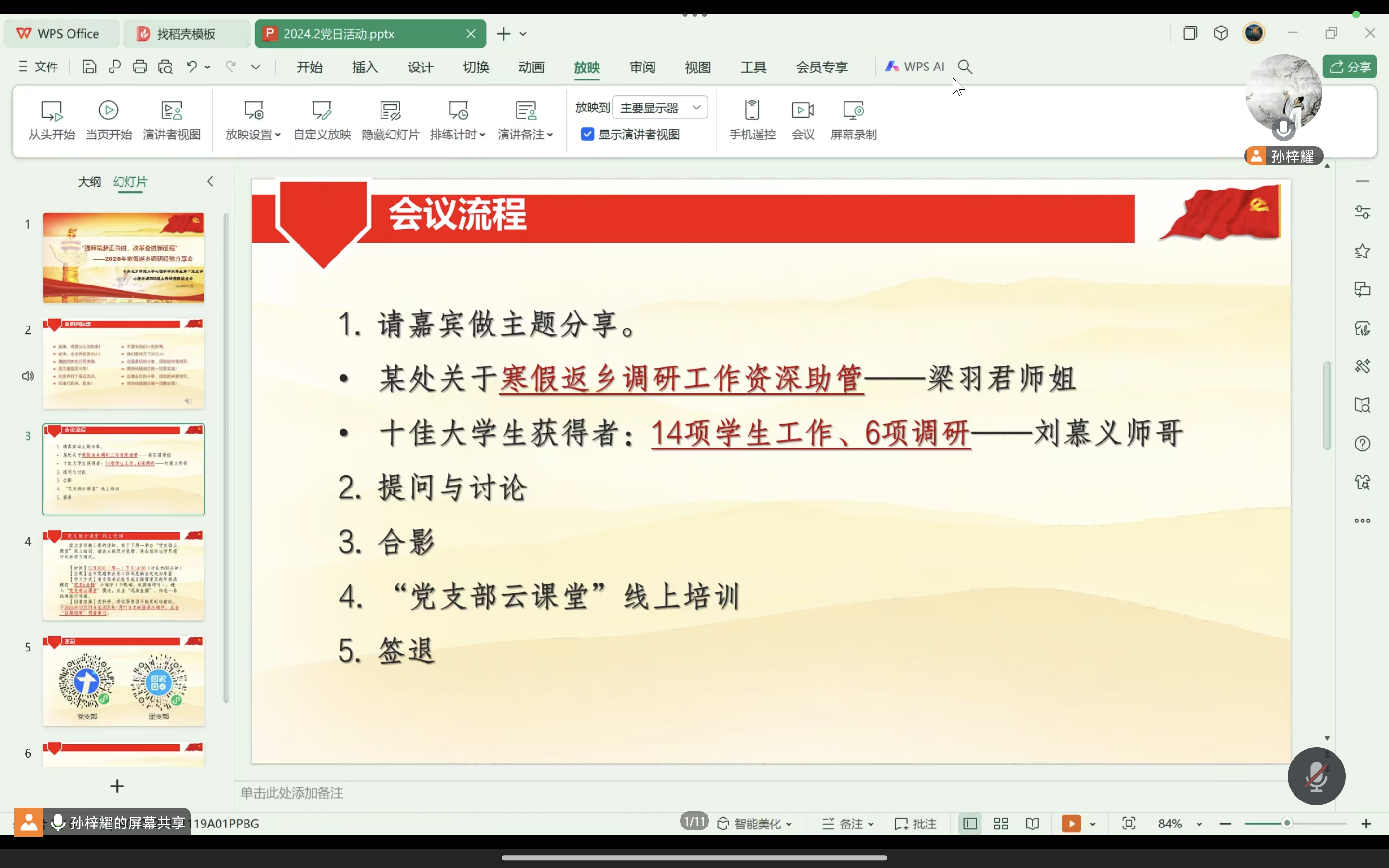 本次活动邀请到了梁羽君师姐、刘慕义师兄进行寒假调研的经验分享,并为参与活动的各位同志设置了提问与讨论环节,保证此次活动真正满足两支部内同志们的需求。