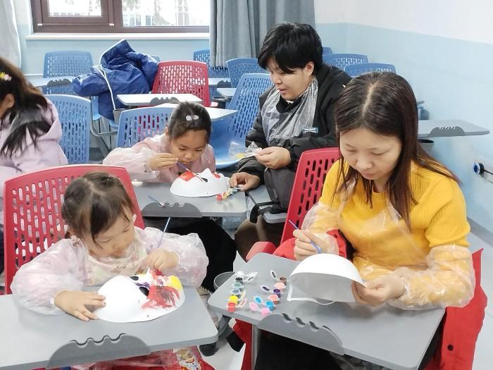 图 6 家长与孩子带着自己亲手绘制的面具合影