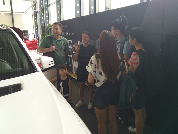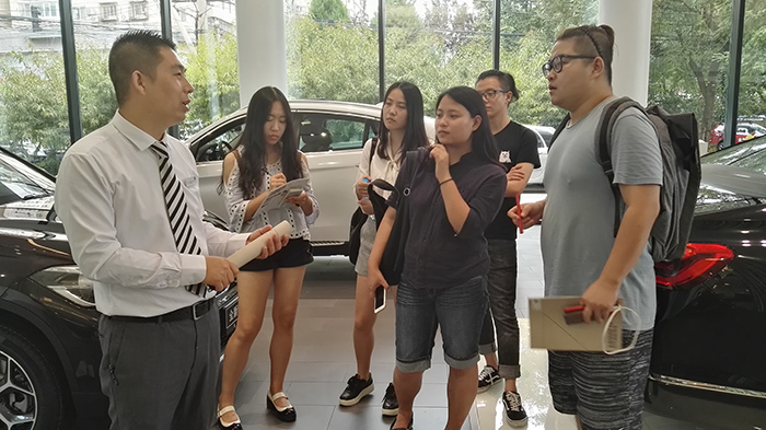 1日下午,在进行完第一轮的展示之后,为了对课题有更加深刻和具体的认识,在刘伟老师的组织下,各组同学开始进行课程的下一项内容:到汽车4S店进行实地调研。旨在通试驾亲身感受各品牌车型的车载语音识别系统、以及对真实顾客的快速用户访谈了解真实用户需求等。