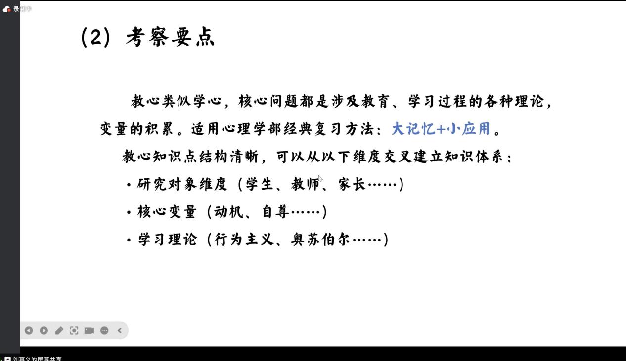 2025年6月7日晚18时至21时,学业辅导室在线上举办了面向22级综合班同学的期末经验分享会。我们邀请到21级的三位学姐学长,他们分享了关于期末备考的经验和考试重点,为同学们充分备考提供了极大帮助。 第一位是21级的刘慕义同学,他与同学们分享了教育心理学和多因素实验设计的备考建议。