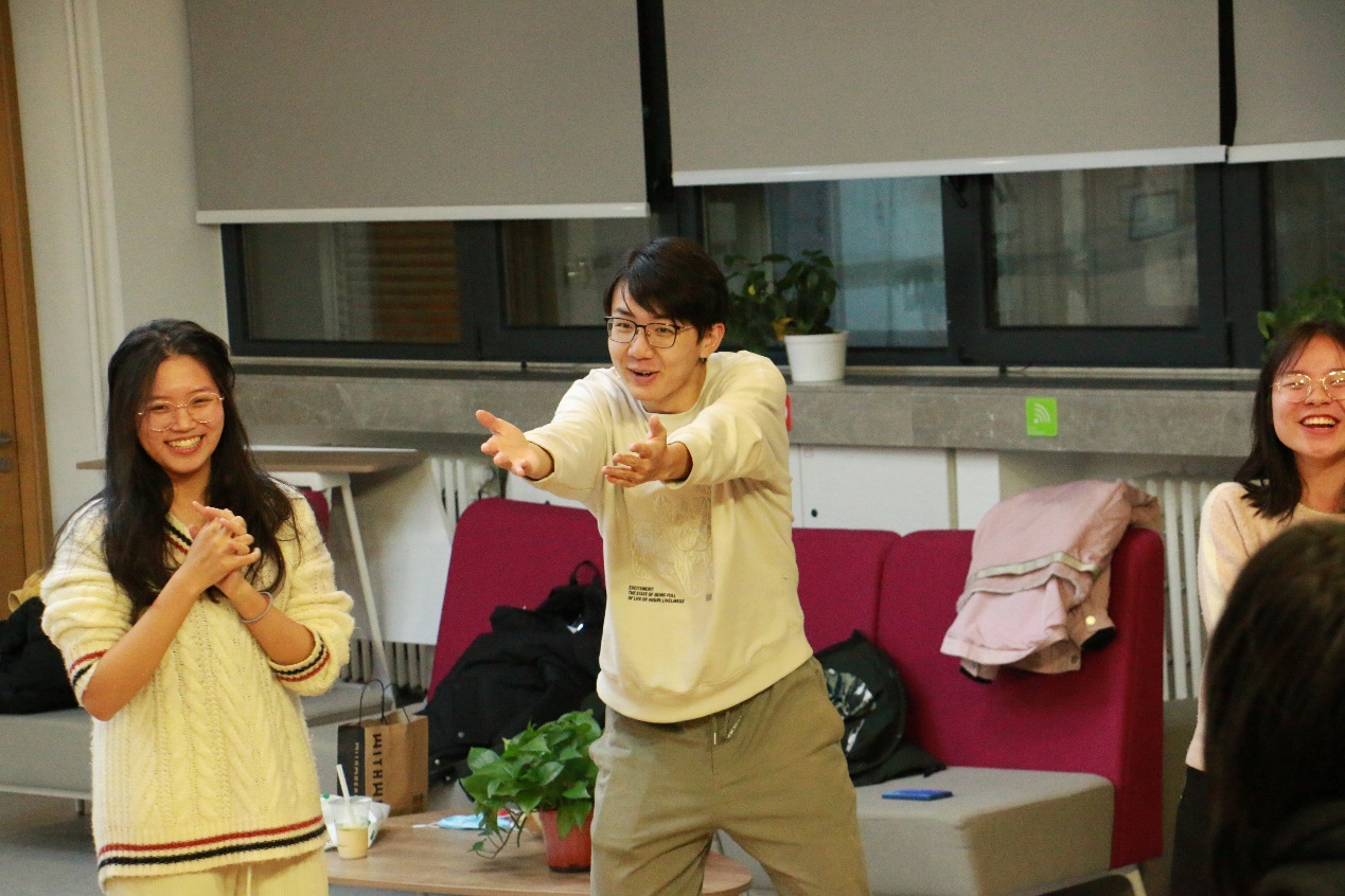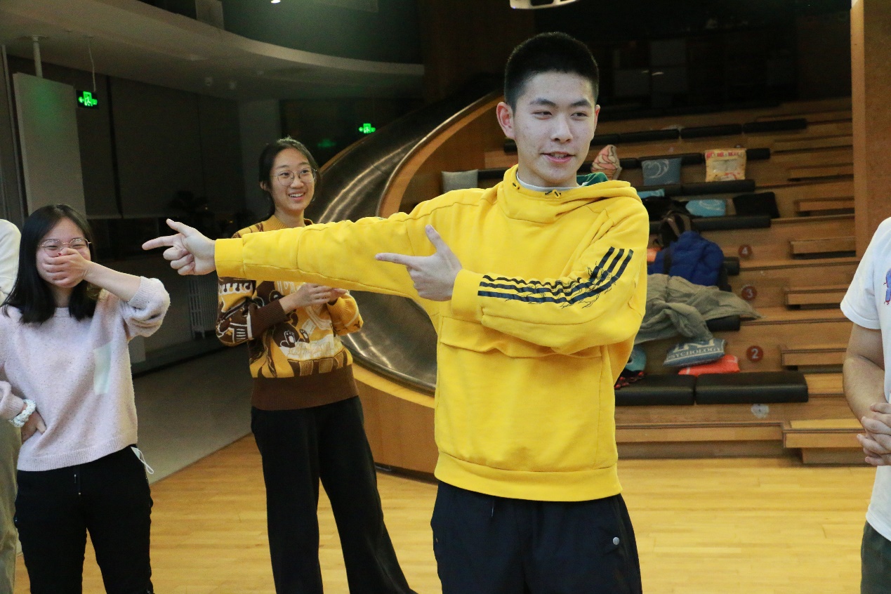 为加强心理建设在班级精神文明建设中的作用,通过集体活动的形式提升学生的心理素质水平,突出班级活动的“心理”特色,欧洲杯 2020级本科2班于2021年12月18日晚19:00于金丰和路演厅与欧洲杯 即兴戏剧椰丝团举行了“2020级本科2班×椰丝团工作坊”共建活动。 班委在10月份便与椰丝团提前沟通准备,活动恰逢六级英语考试结束和期末压力较大的阶段,椰丝团成员们为2班同学精心设计、准备了适合当前阶段缓解压力的游戏活动。 活动由椰丝团团长瞿弋丁同学主持,首先由热身游戏“疯狂八”让同学们放松身体,进入活动的状态。接着,下一个活动“yip yap yup”进行能量传递,由一个家族逐渐增加难度,没有做出相应动作的“大明星”和同学们击掌,当难度增加到大家有些手忙脚乱时,主持人宣布接下来的环节中不中断游戏,无论ta有没有做出正确的动作,都会被say yes,并由接收能量的同学顺着正确的轨道进行下去。