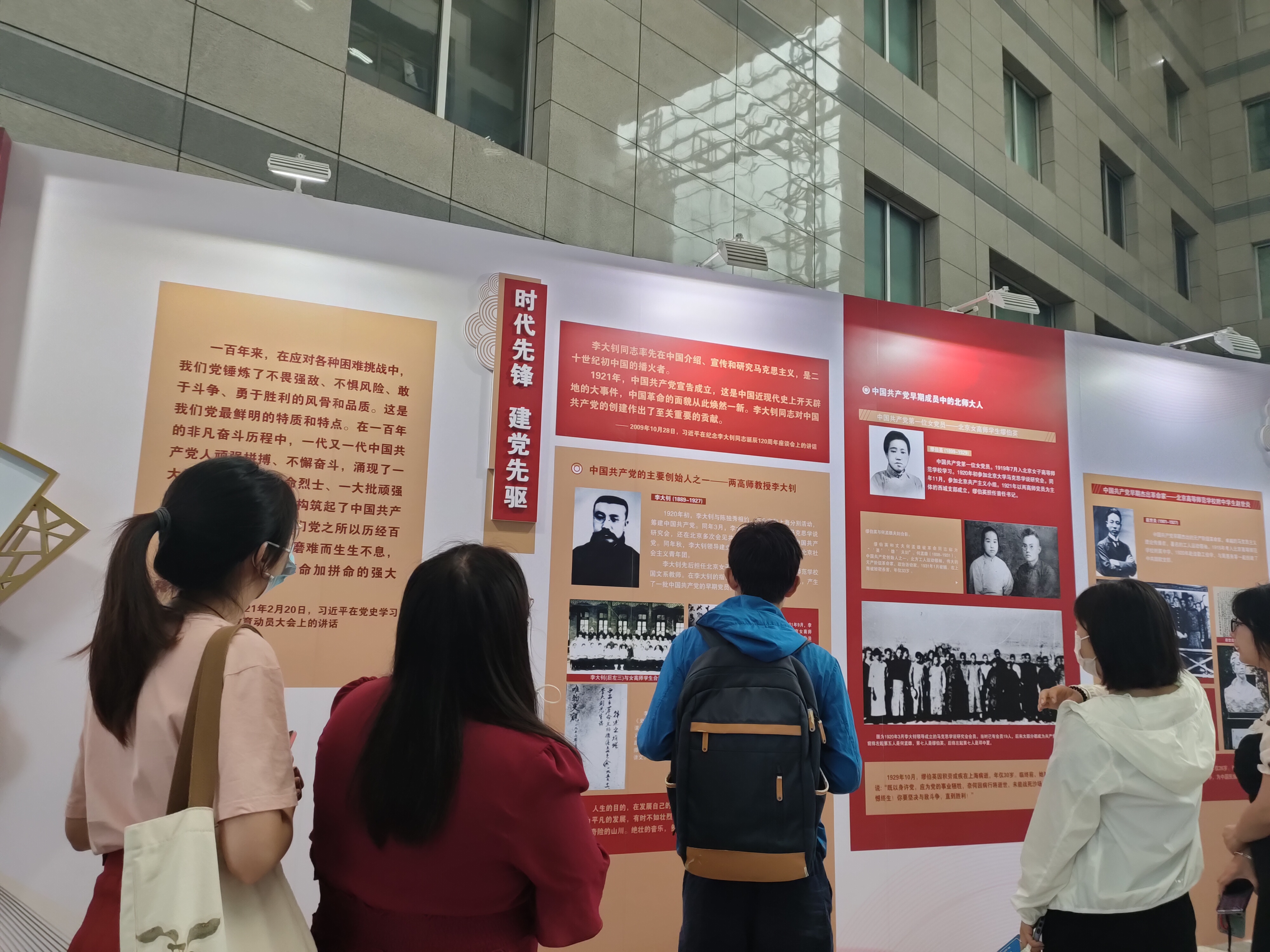 2021年6月29日下午3点30分至4点,心理学院研究生第六党支部、研究生第九党支部和2020级博士第二团支部共同前往图书馆一楼,参观由中国邮政总公司北京分公司来校办的“赏邮票、学党史”主题邮票展。4点至4点30分,研究生第六党支部继续前往主楼四季厅参观“红色师范与百年传承”主题展览。 中国共产党成立百年以来,许多重大历史事件、重要会议、代表人物等,在我国发行的红色题材邮票中大多有所体现。此次“赏邮票、学党史”主题邮票展的内容主要是包含“中国共产党成立篇”、“新中国成立篇”、“社会主义制度建立与社会主义建设篇”、“改革开放新时期”和“中国特色社会主义进入新时代”在内的红色题材邮票。 同志们在参观过程中互相交流,津津有味地讨论邮票内容,还发现了许多未曾在课本和影视作品中见到的场景。参观结束后,大家与工作人员一起合影留念。 参观邮票展的过程就是在回顾我们百年党史的过程,同志们表示从中体悟到了党的奋斗历程,今后自己也会继续发扬党的光荣传统,做一名合格党员! 之后,研究生第六党支部成员继续前往主楼四季厅参观“红色师范与百年传承——北京师范大学庆祝中国共产党成立100周年主题展览”。 此次展览主要划分为四个单元。第一单元“红色基因 薪火相传”,通过李大钊、缪伯英、赵世炎等时代先锋的风采,展现北师大是当之无愧的“红色师范”。第二单元“不懈探索 砥砺前行”和第三单元“改革春天 蓬勃发展”透过34个大事记,回顾党的领袖关怀北师大,学校党组织建立并不断完善,在党的领导下学校蓬勃发展的历史瞬间。第四部分“新时代 新征程”,展示党的十八大以来,学校在以习近平同志为核心的党中央坚强领导下,在坚持党的全面领导、加强党的建设和全面从严治党、确立办学目标和构建“一体两翼”办学格局、落实立德树人根本任务、落实“四有”好老师重要讲话精神、服务国家重大发展战略等方面取得的新成就。 作为师大学子,同志们在参观过程中感受到了师大的红色基因和自身的责任,在参观后纷纷写下了自己的深刻感悟,如: 邹子兰:在支部的组织生活会上,大家的深入讨论让一直在思考,我们学党史,学先辈的经验,但这些并不一定适合现在的时代,身为学生党员,在这个时代,我们又如何发挥传承和弘扬先辈们的精神呢?学校的百年传承主题展览给了我非常切实的答案,展厅从两部分来展现,一部分是过往,一部分是今朝,在过往的事迹里,我看到了那个动荡年代里,北师大人的努力与作为,刘和珍、范士融、杨德群等人用生命坚守的自己的爱国信念,李大钊、缪伯英等人勇于开拓,为党的成立与发展不断奋斗等等。而在今朝的事迹里,我看到了像黄文秀师姐把生命奉献给脱贫攻坚事业的榜样。身为新一代北师大人,中国青年,以及共产党人,在跟随党一起实现伟大复兴的中国梦的征途上,我们能做的还有很多! 梅刻寒:最近和其他同学一样,追觉醒年代的电视剧追的津津有味儿。和党支部参观的建党百年展览让我再一次真真切切的感受到了北师大的红色传承。先师鲁迅曾经在师大任教,在电视剧中只讲了鲁迅先生在北大任教,可能因为这个电视剧还是主要着眼于北京大学的缘故。而这一次的展览,我看到了李大钊先生,鲁迅先生,还有刘和珍同志,一个个在课本中出现的人物,在影视剧作品中出现的人物,几十年百年前竟然都和我站在过一片土地上,在同一个学校读过书,在同一个学校吃过饭走过路,都会让我觉得,我今天能够站在这里,和无数的先贤和榜样在不同的时间同一个空间,一种自豪感和认同感油然而生。 陈素素:在党支部的带领和组织下,我们参观了红色师范与百年传承的主题展览。看到无数前辈们的身影和事迹,我深受鼓舞。缪伯英、赵世炎、刘仁静,这些北师人在特殊的年代里不断抗争,坚强站立,奋勇拼搏,在国家危难存亡之际奋起反击。我从他们身上看到了我们民族的风骨和凝聚力,看到了北师人的家国情怀。作为当下时代的青年,我们也应当为社会尽到自己的一份力,让国家变得更好。在这次照片展中,还有一张照片让我印象尤为深刻,恢复高考之际,北师1977、1978两级新生入学,那时的学生昂首阔步、笑容满面地拎着行李走进校园,照片虽是黑白,却透着满满朝气,我们当向他们学习,感受知识的魅力,为自己的人生奋斗。 刘津均:从我们党成立前的思想启蒙到党的百年征程,师大都参与其中,和我们的党一同成长,在党的领导下积极参与我国的革命、建设和改革开放的伟大实践。要学习师大前辈们的优良品质,传承他们的红色血脉,才能不负师大人之称谓。同时,我也看到党和国家对师大学子一直以来的热切关怀和殷切期望,感到自己身上责任之重。希望自己能学有所得,切实地回应这份期望。 张涵宇:参观了师大庆祝中国共产党成立100周年的特别主题展览,我们看到了百余年来师大红色血脉的传承。在战争年代,师大曾出过一位位革命英雄不懈斗争;在当今的和平年代,师大也培养出了像黄文秀同志一般的优秀党员奉献在扶贫一线;还有更多默默在自己岗位坚守的师大人,也在为国家为人民默默地付出,令人感动和敬佩。 徐敏:在看《觉醒年代》的时候,觉得美中不足的是剧中鲜少表现女共产党员的风姿和贡献,今天在展览中看到了北师大前身女子高等师范学校中各位