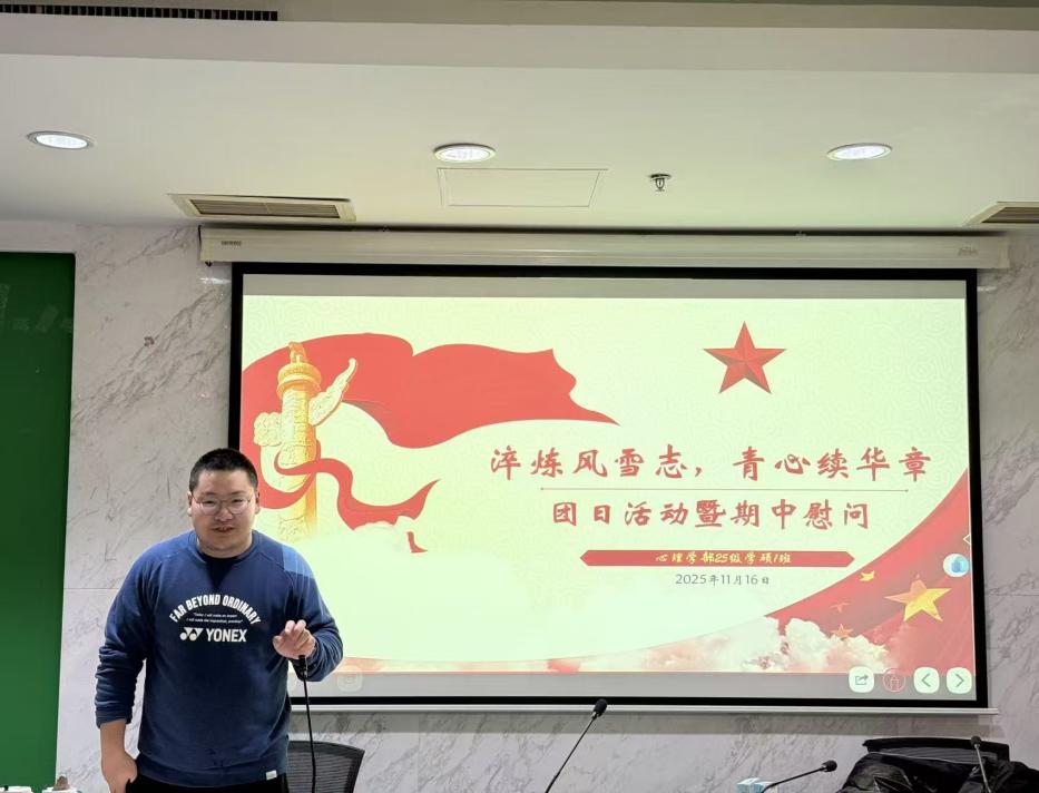 为深入学习贯彻习近平新时代中国特色社会主义思想,进一步砥砺青年学子的家国情怀与使命担当,25级学硕第一团支部于11月16日晚在后主楼1318会议室,成功举办以“淬炼风雪志,靑心续华章”为主题的十一月团日活动。本次活动应到团员70人,实到48人,请假22人。