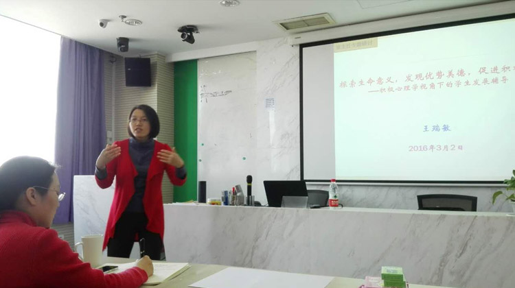 2016年3月2日下午2点,北京师范大学心理学院在后主楼1318开展主题为“探索生命意义,发现优势美德,促进积极发展——积极心理学视角下的学生发展辅导”的班主任、辅导员培训活动。心理学院分党委副书记王瑞敏老师主持本次活动,9位来自心理学院的本科生、研究生班主任和辅导员参与活动。