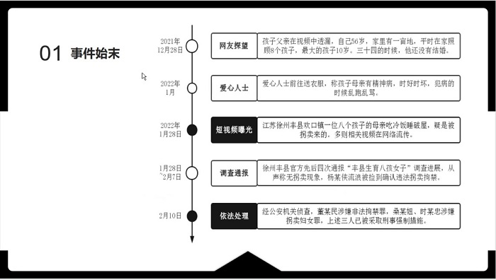 事件起源于2022年1月28日,一位短视频博主发布的内容在网上引起舆论对于妇女儿童拐卖问题的轩然大波,对此,江苏省委省政府决定成立调查组,对“丰县生育八孩女子”事件进行全面调查,彻底查明事实真相,对有关违法犯罪行为依法严惩,对有关责任人员严肃追责,结果及时向社会公布。