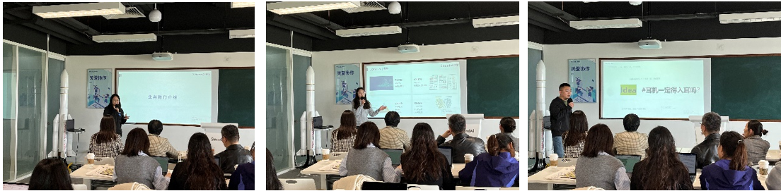 随后,公司人才运营部代表开启了招聘宣讲环节,向师生们介绍了欧洲杯、职位设置、人才发展和面试流程,并强调了公司对于员工深造的支持力度。之后,多个部门负责人及代表向同学们做部门岗位介绍:公司品牌平台负责人介绍了品牌建设过程和对应的人才能力需求重点;硬件产品经理代表介绍了产品经理的主要工作内容、Azero硬件产品及硬件产品经理能力培养的内容;软件产品经理代表基于声智科技进行的具体产品范例,介绍了软件产品经理、技能经理和产品运营的具体工作职责。