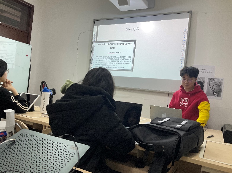 在第二环节中,张一阳同学受邀为同学们讲述他在假期的寒假调研中所做的调研项目,让大家对寒假调研项目有了初步了解,为同学们后续参加调研项目打下了基础。