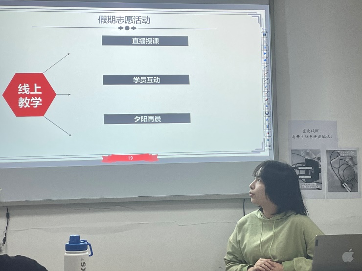 第三个环节中,林无恤同学为大家带来对志愿服务的介绍和她在志愿服务岗位上的经历和感受。她所负责的笔友项目和“夕阳再晨”项目为大家带来了新奇的体验,也让大家有了参与志愿活动的热情。