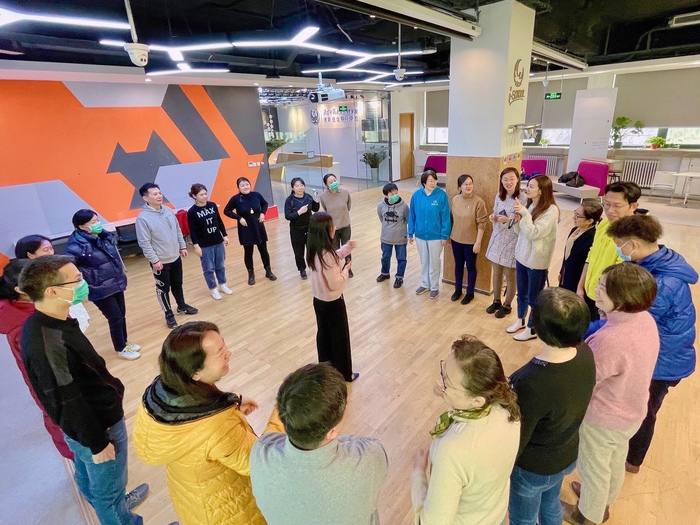 参访开始前,双创中心的品牌战略主管郑汝婷带领北师大校医院的老师进行了暖场破冰。